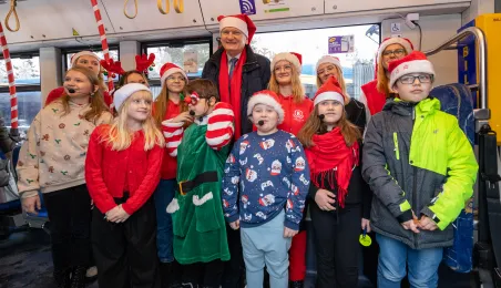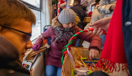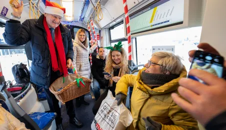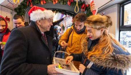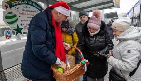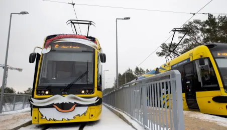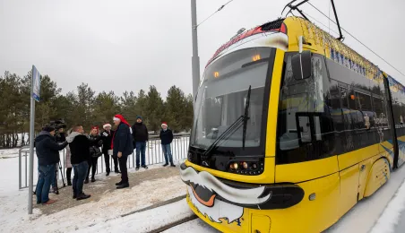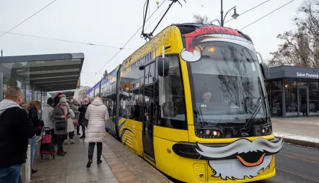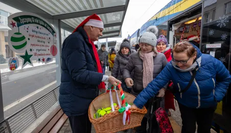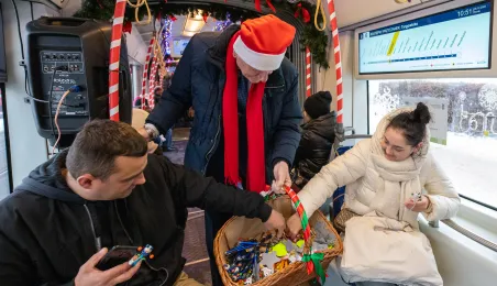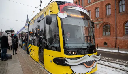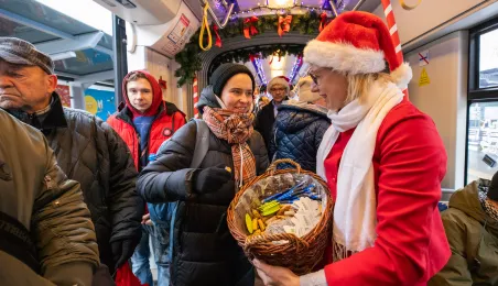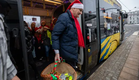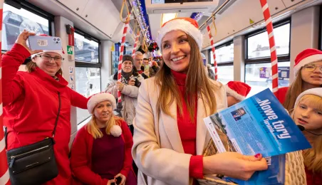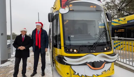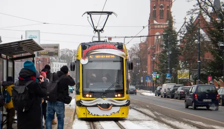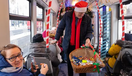 6 grudnia 2023 roku w Toruniu rozpoczął kursowanie tramwaj świąteczny. W inauguracyjnym przejeździen na północ Torunia wziął udział Prezydent Michał Zaleski. / fot. Agnieszka Bielecka