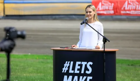 5 sierpnia 2020 r. na Motoarenie w Toruniu odbył się trening Żużlowej Reprezentacji Polski, połączony z konferencją prasową dot. planów kadry na pozostałą część 2020 roku. Gośćmi spotkania byli: Ryszard Czarnecki, Piotr Szymański, Bartosz Zmarzlik, Marek Cieślak i przedstawiciele sponsorów. Fot. Sławomir Kowalski