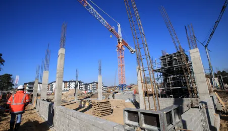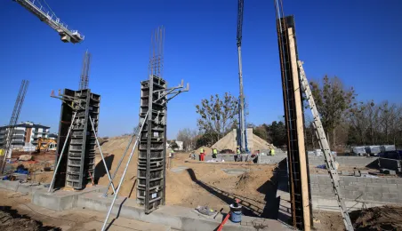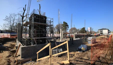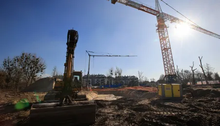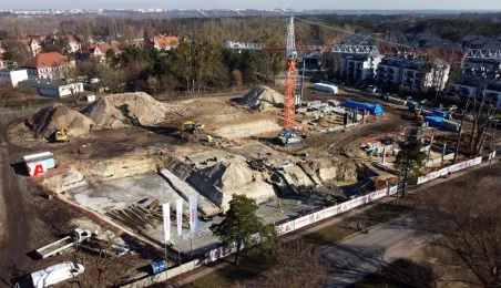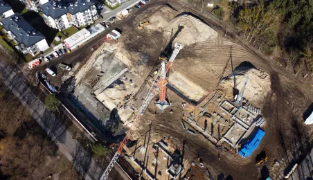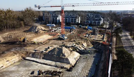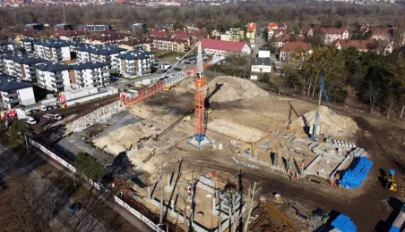 Przy ul. Strzałowej powstaje nowoczesny obiekt, złożony ze szkoły, przedszkola, ogólnodostępnej biblioteki oraz zaplecza sportowo-rekreacyjnego. Prace mają potrwać do końca listopada 2024 r. Zdj. Sławomir Kowalski