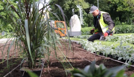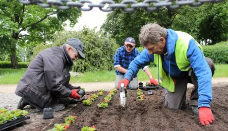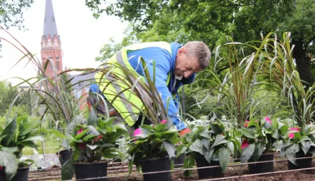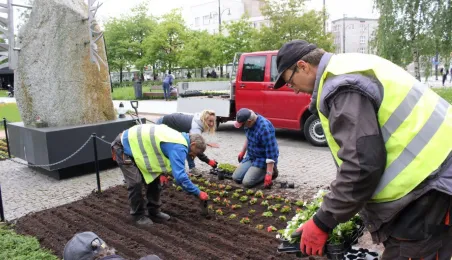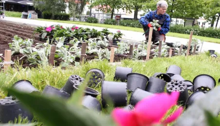 Blisko 20 000 sztuk kwiatów pojawi się w najważniejszych punktach w mieście - trwa nasadzanie m.in. na terenie Zielonej Bramy Gotyckiej Starówki. Fot. Adam Zakrzewski