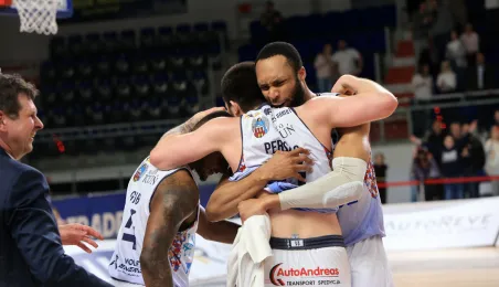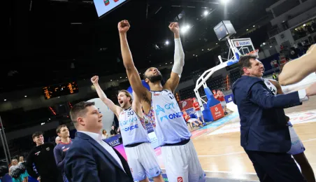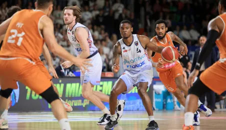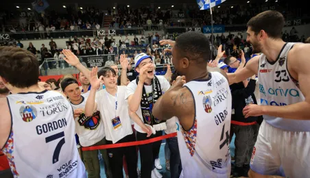 Dzięki zwycięstwu z GTK Gliwice w ostatniej kolejce koszykarskiej ekstraklasy, Arriva Twarde Pierniki Toruń zapewnili sobie utrzymanie w Energa Basket Lidze. Zdj. Sławomir Kowalski