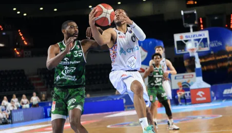 Wynikiem 70:83 zakończył się sobotni (2.03.2024) mecz koszykarzy Arriva Polski Cukier Toruń z Legią Warszawa. Jeszcze w połowie czwartej kwarty Twarde Pierniki przegrywały tylko 64:65, w końcowym fragmencie dominowali jednak goście. Fot. Sławomir Kowalski