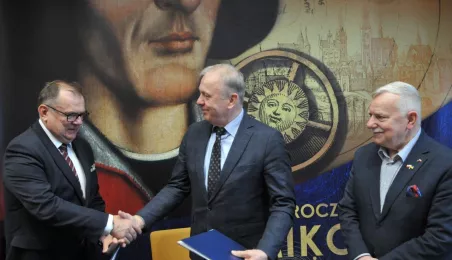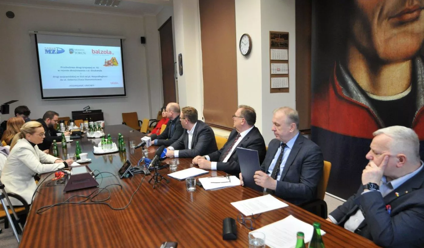 17 kwietnia 2024 r. w Urzedzie Miasta Torunia przedstawiciele miasta i firmy Balzola Polska sp.zo.o., która jest wykonawcą prac, podpisali umowę na przebudowę drogi krajowej nr 91 w rejonie skrzyżowania z ul. Strobanda i drogi wojewódzkiej nr 553 od pl. Niepodległości do ul. Dekerta. Inwestycja potrwa do 2025 r. Fot. Małgorzata Litwin