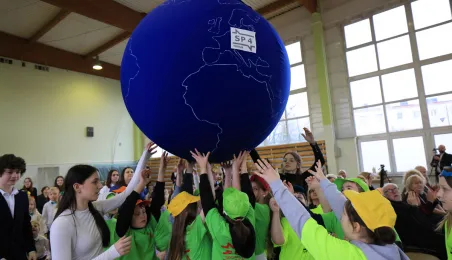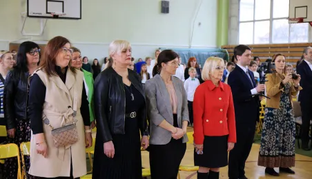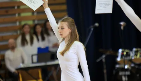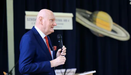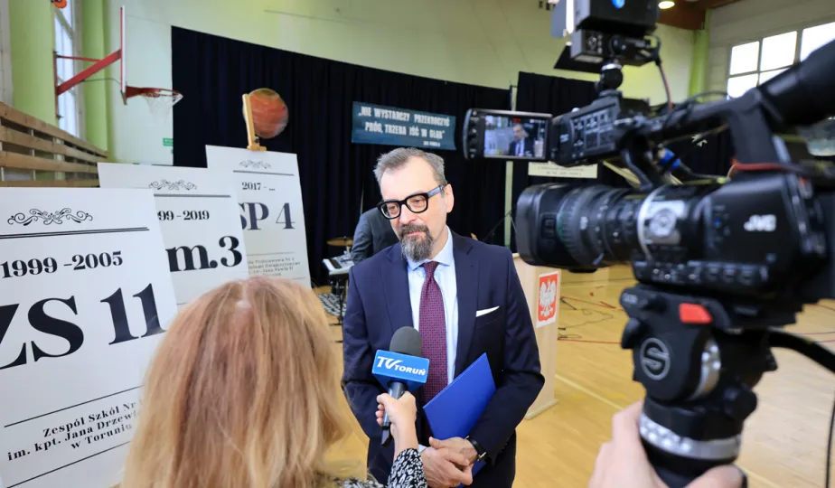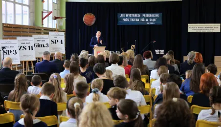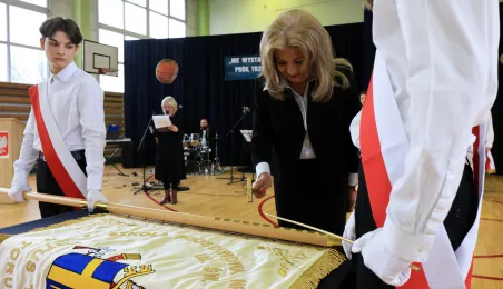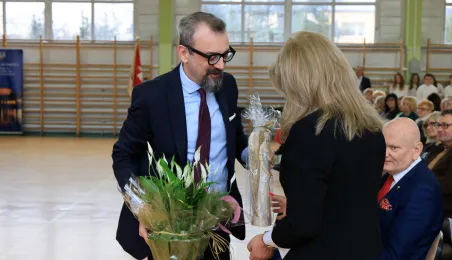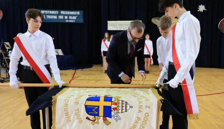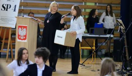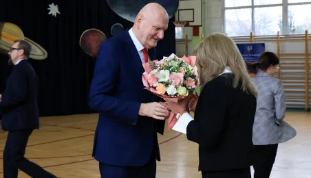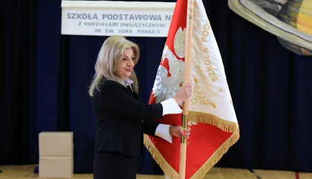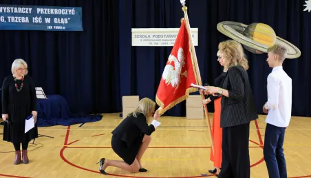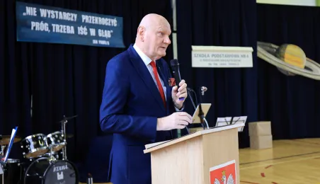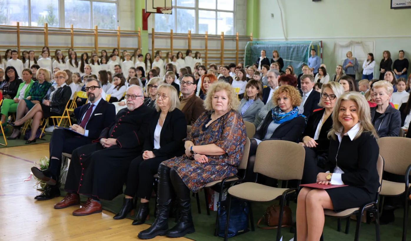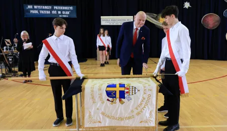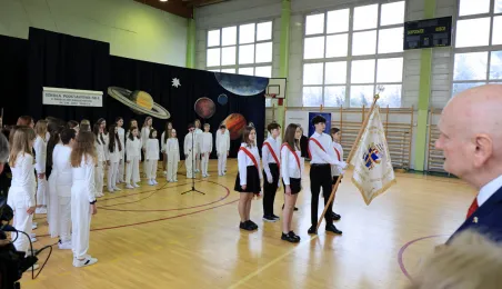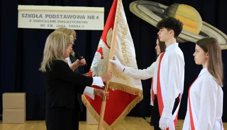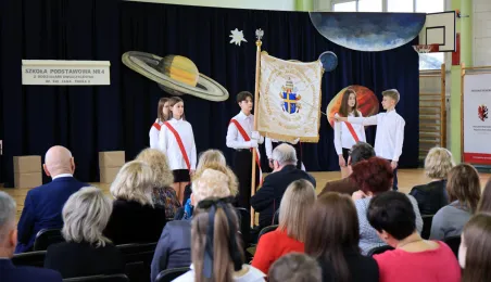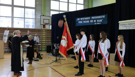 11 marca 2024 r. prezydent Michał Zaleski wziął udział w uroczystości nadania sztandaru Szkole Podstawowej nr 4 z oddziałami dwujęzycznymi im. św. Jana Pawła II. Fot. Sławomir Kowalski