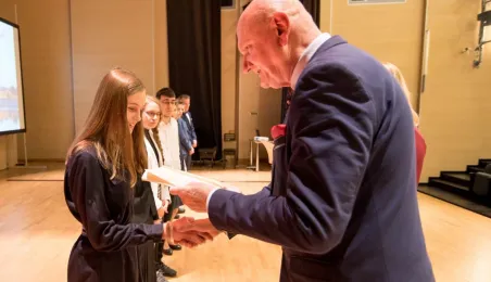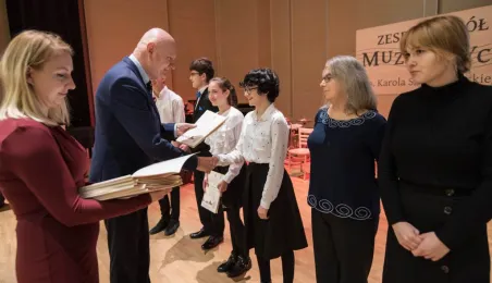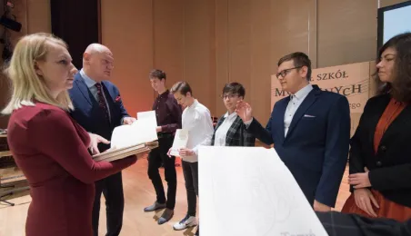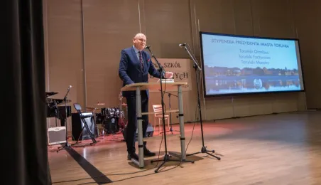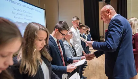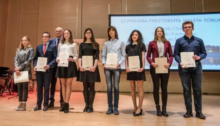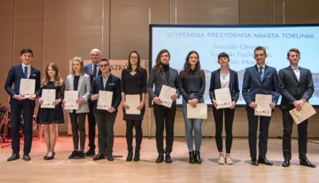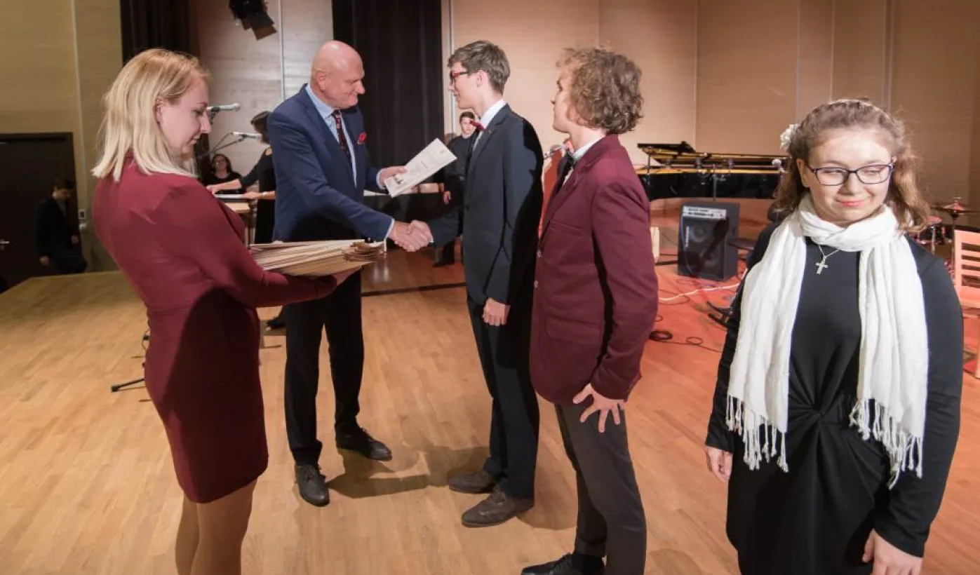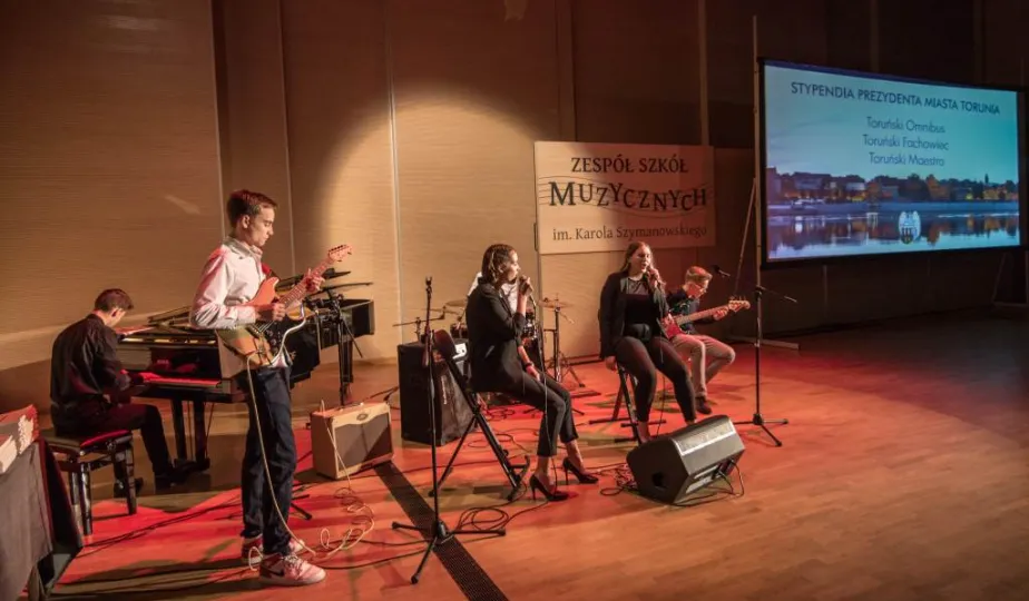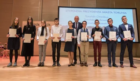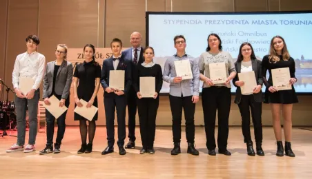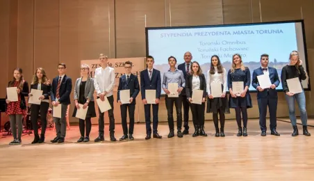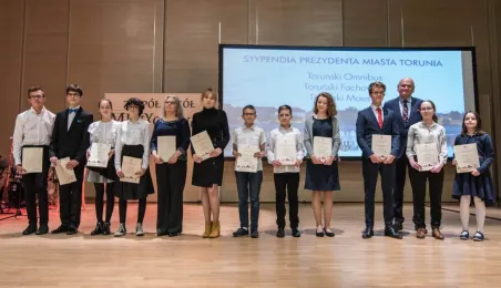Toruński Omnibus, Maestro oraz Fachowiec - 250 uzdolnionych uczniów i uczennic toruńskich szkół otrzymało od prezydenta Torunia Michała Zaleskiego stypendia na rok szkolny 2019/2020. Pierwsza część uroczystości odbyła się 14 listopada 2019 r. w sali koncertowej Zespołu Szkół Muzycznych. Fot. Lech Kamiński
