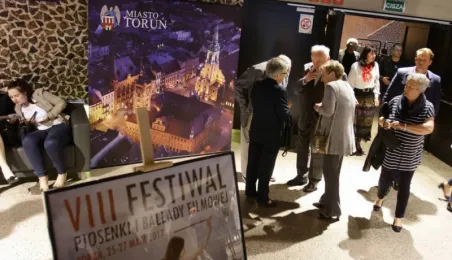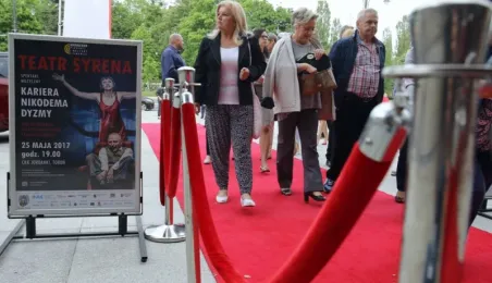 Po czerwonym dywanie, jak przystało na świat kina, weszli widzowie koncertu otwierającego VIII Festiwal Piosenki i Ballady Filmowej, który odbywa się w Toruniu w dniach 25-27 maja 2017 roku. W Centrum Kulturalno-Kongresowym Jordanki wystąpili artyści Teatru Syrena z musicalem "Kariera Nikodema Dyzmy" w reżyserii Wojciecha Kościelniaka. Fot. Adam Zakrzewski