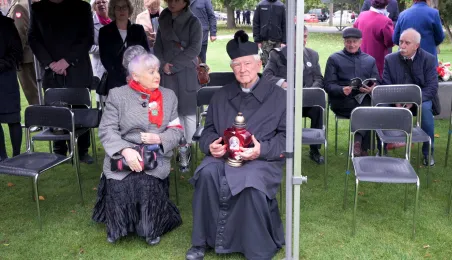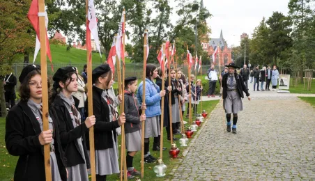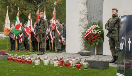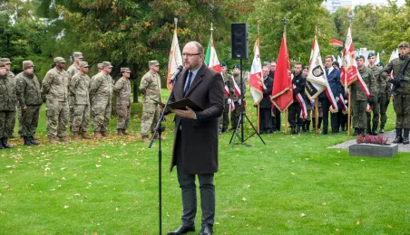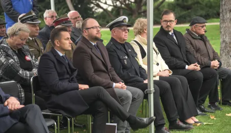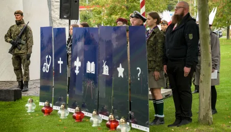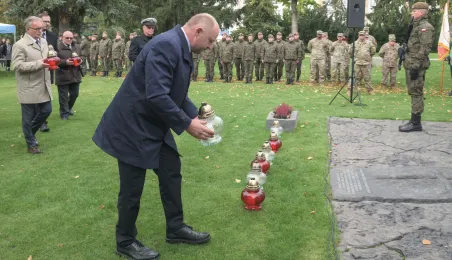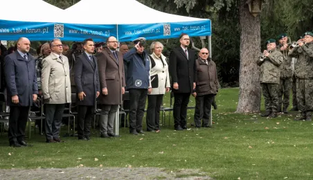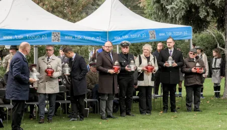 W toruńskim Parku Pamięci Ofiar Zbrodni Pomorskiej uczczono 2 października 2022 r. ofiary hitlerowskich czystek wśród ludności dawnego województwa pomorskiego. Uroczyste spotkanie zgromadziło parlamentarzystów, przedstawicieli samorządu miasta i województwa, kombatantów, duchownych, członków organizacji i stowarzyszeń oraz harcerzy, którzy przygotowali z tej okazji inscenizację historyczną. . Miasto Toruń reprezentowali zastępca prezydenta Paweł Gulewski i wiceprzewodnicząca Rady Miasta Torunia Dagmara Tuszyńska. Fot. Lech Kamiński