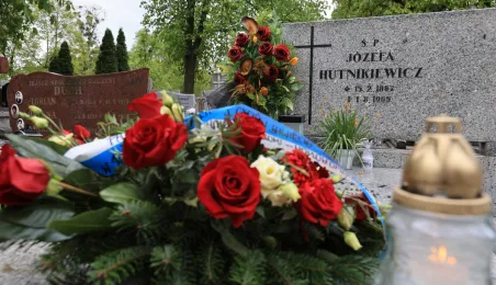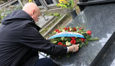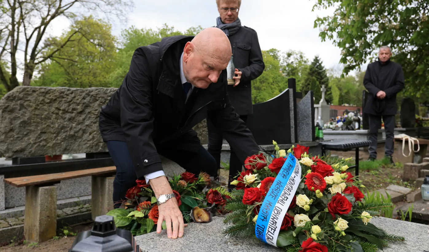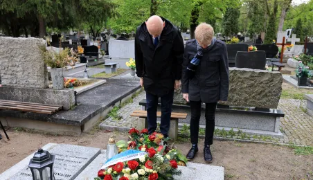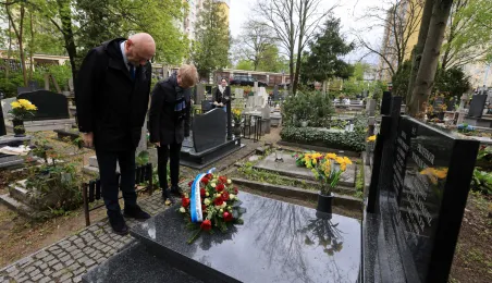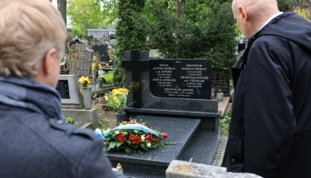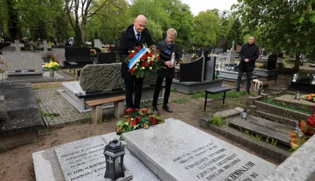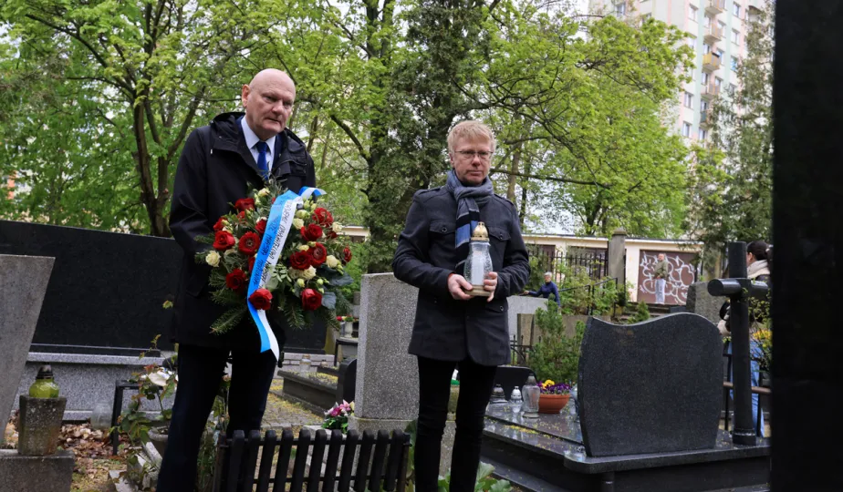 16 kwietnia 2024 r. przedstawiciele miasta - prezydent Michał Zaleski i dyrektor Biura Rady Miasta Marek Wiliński odwiedzili groby dwóch zasłużonych profesorów UMK: prof. Mariana Biskupa i prof. Artura Hutnikiewicza w rocznice ich śmierci. Fot. Sławomir Kowalski