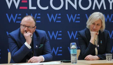 "Samorządy lokalne w perspektywie starzenia się mieszkańców" to tytuł jednego z paneli podczas tegorocznego spotkania Welconomy Forum in Toruń. O działaniach na rzecz seniorów rozmawiali w CKK Jordanki: posłanka dr Joanna Borowiak, przewodnicząca Sejmowej Komisji ds. Polityki Senioralnej, zastępca prezydenta Torunia Paweł Gulewski, Kordian Kulaszewicz - prezes Fundacji Adaptacja, dr inż. Anita Richert-Kaźmierska - zastępca wójta Gminy Kolbudy, Dariusz Woźniak - Skarbnik Powiatu Świeckiego i jako moderator dyskusji - Łukasz Salwarowski - Redaktor Naczelny Ogólnopolskiego Głosu Seniora. Fot. Małgorzata Litwin