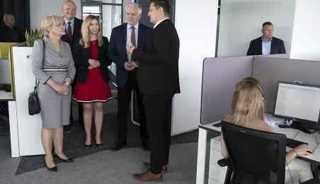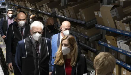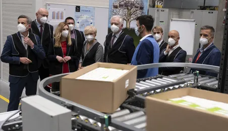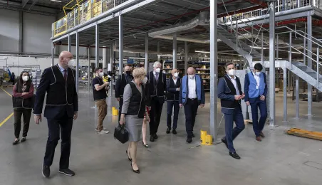2 lipca 2021 r. goszczący w Toruniu wicepremier Jarosław Gowin, minister rozwoju, pracy i technologii oraz towarzyszące mu Iwona Michałek, sekretarz stanu w Ministerstwie Rozwoju, Pracy i Technologii oraz Anna Kornecka, podsekretarz stanu w Ministerstwie Rozwoju, Pracy i Technologii mieli okazję zwiedzić nową siedzibę firmy Neuca przy ul. Fortecznej. Fot. Wojtek Szabelski