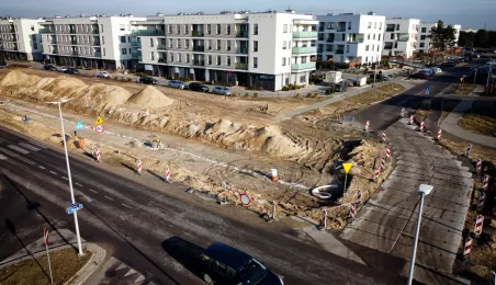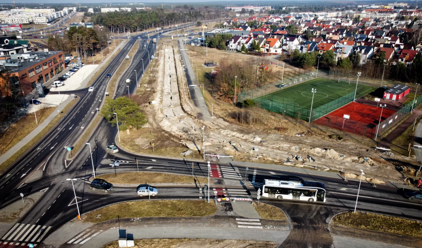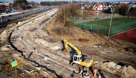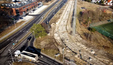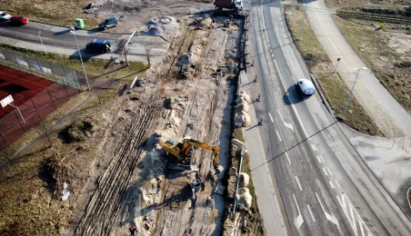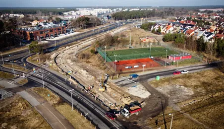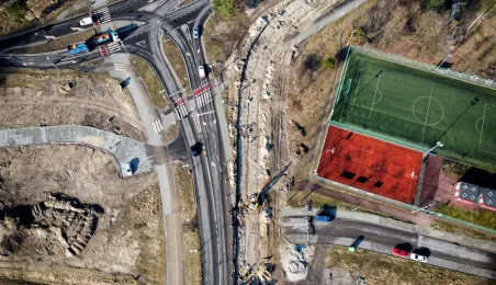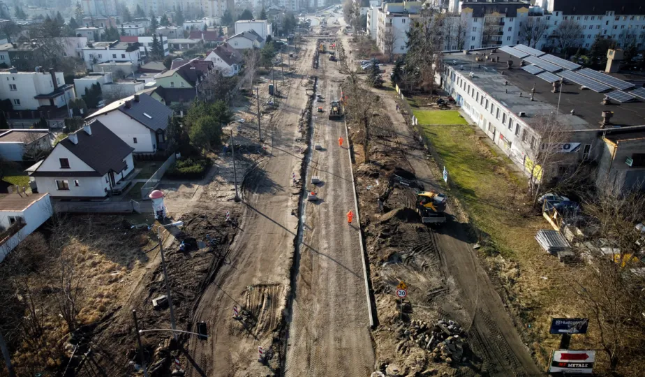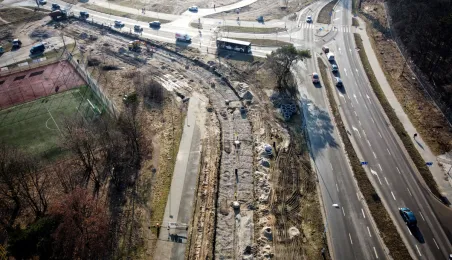 Trwa budowa linii tramwajowej na tzw. osiedle Jar. Spojrzenie z góry na prace prowadzone w wielu lokalizacjach w mieście. Fot. Sławomir Kowalski