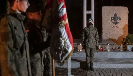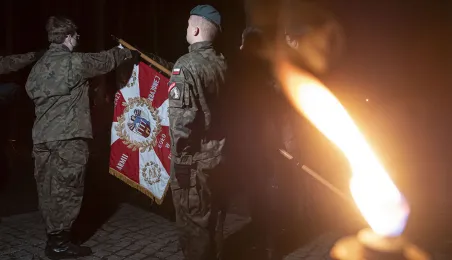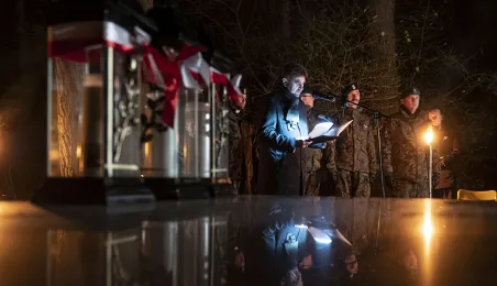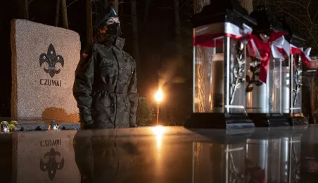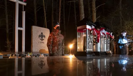 Przy Mogile – Pomniku Pomordowanych Harcerzy w Osadzie Olek nad Strugą Łysomicką w dniu 10 listopada 2021 r. odbyła się uroczysta Wieczornica Patriotyczna Jednostki Strzeleckiej 1909. Udział w niej wzięli przedstawiciele samorządu, parlamentarzyści, przedstawiciele służb mundurowych. Centralnym punktem wydarzenia było ślubowanie kadeckie 14 osób i złożenie przyrzeczenia strzeleckiego przez 4 osoby. Fot. Wojtek Szabelski