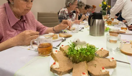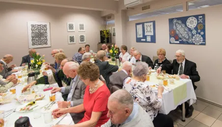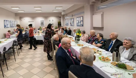 Podopieczni Dziennego Domu Pomocy Społecznej przy ul. Rydygiera w Toruniu spotkali się 13 kwietnia 2022 r. na wielkanocnym śniadaniu. Placówka działająca od 1989 r. jest ośrodkiem wsparcia o zasięgu lokalnym. Zapewnia dzienny pobyt i usługi opiekuńcze, osobom które z uwagi na wiek, chorobę lub niepełnosprawność wymagają częściowej opieki i pomocy w zaspokojeniu niezbędnych potrzeb życiowych. W tej chwili uczęszcza do niej 95 osób. Fot. Lech Kamiński