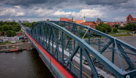 Trwa rozbudowa mostu im. Józefa Piłsudskiego w Toruniu. W ostatnim czasie realizowane były prace związane m.in. z betonowaniem płyty ustroju nośnego obiektu oraz układaniem nowych ciągów pieszorowerowych.
