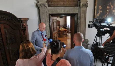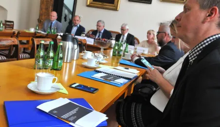 29 czerwca 2021 r. w Toruniu gościli członkowie Podkomisji Stałej RP ds. wykorzystania środków Unii Europejskiej. Wizyta była elementem objazdu po naszym województwie. W Toruniu goście odwiedzili m.in. Ratusz Staromiejski, Dom Kopernika, CKK Jordanki, Aqua Toruń i Wojewódzki Szpital Zespolony. Fot. Małgorzata Litwin i Lech Kamiński