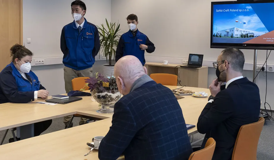 W dniu 4 lutego 2021 r. prezydent Michał Zaleski złożył wizyte w zlokalizowanej w Łysomicach firmie Sohbi Craft Poland Sp. z o.o.. Spotkał się z zarządem firmy, jak i poznał profil jej działalności i plany rozwoju. Fot. Wojtek Szabelski