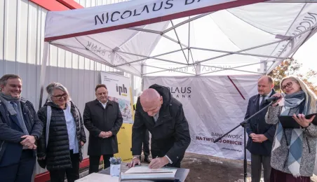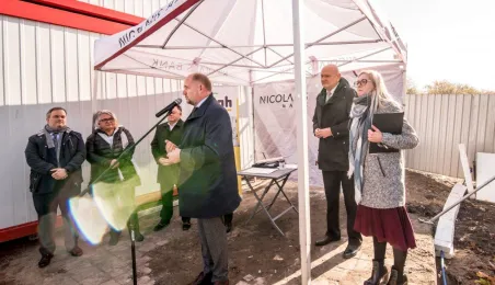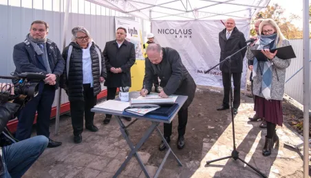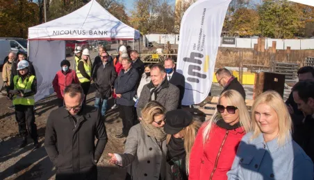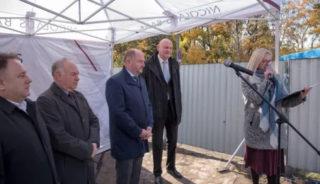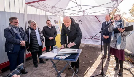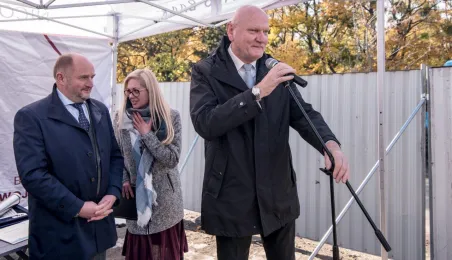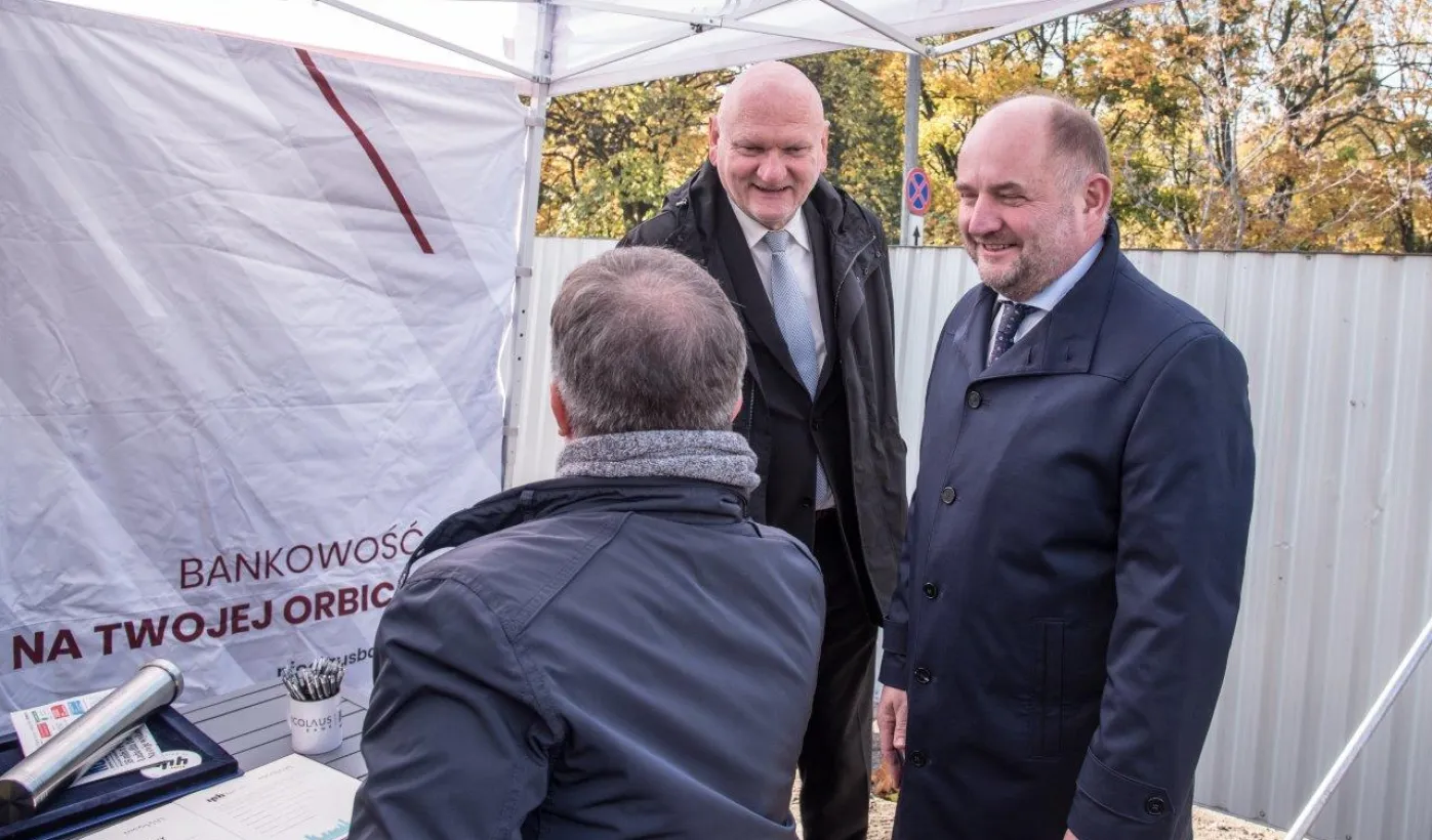 26 października 2021 r. prezydent Michał Zaleski, marszałek Piotr Całbecki oraz przedstawiciele wykonawcy dokonali wmurowania aktu erekcyjnego Business Center Lab. Obiekt powstaje przy ul. Sportowej 18-20. Fot. Lech Kamiński