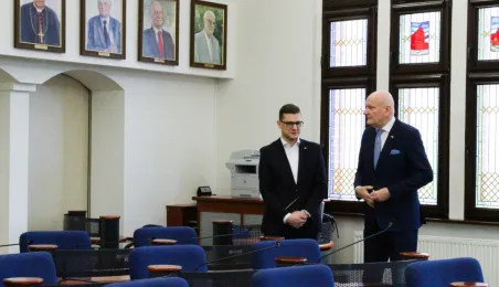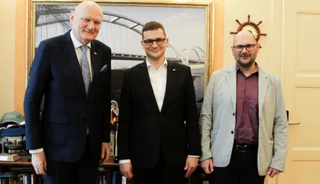 28 lutego 2024 r. Urząd Miasta Torunia odwiedził nowy Wojewoda Kujawsko-Pomorski – Michał Sztybel. Towarzyszył mu pełnomocnik ds. samorządowych Rafał Rospenda. Spotkał się z nimi Prezydent Torunia Michał Zaleski. / fot. Paula Gałązka