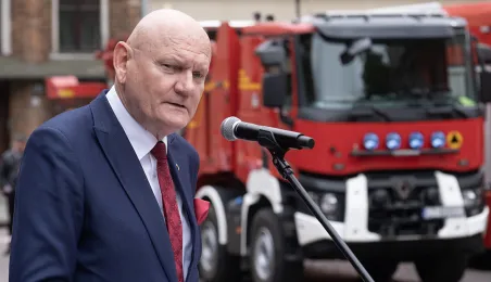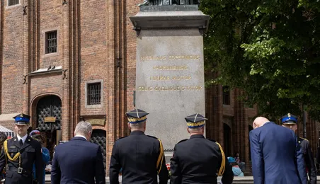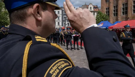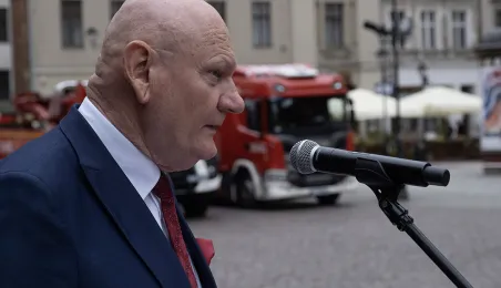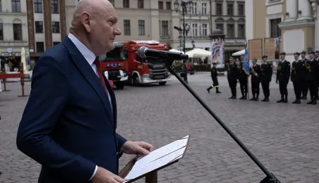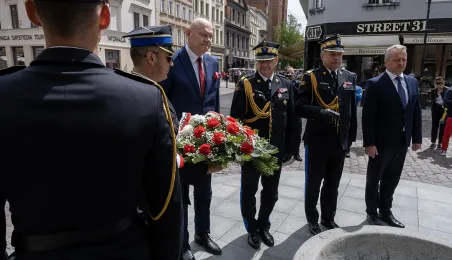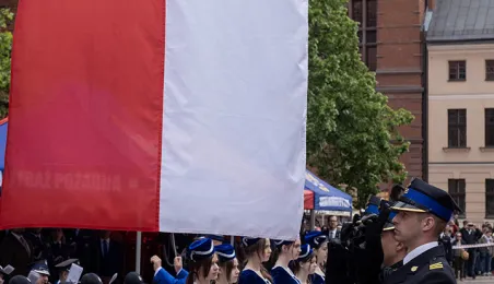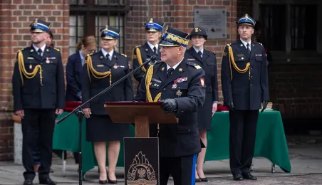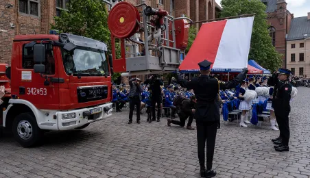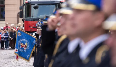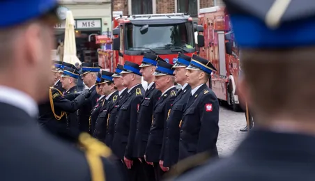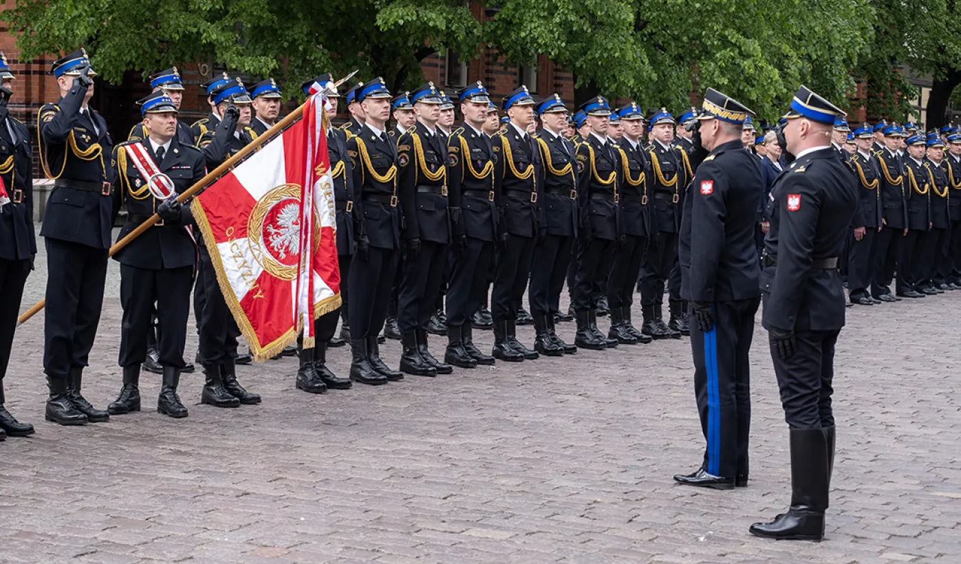 W środę 17 maja 2023 r. na Rynku Staromiejskim odbyły się Wojewódzkie Obchody Dnia Strażaka w Toruniu, w trakcie których wręczone zostały awanse i odznaczenia dla szczególnie wyróżniających się strażaków z całego województwa kujawsko-pomorskiego. Zdj. Wojtek Szabelski