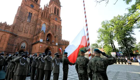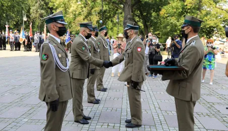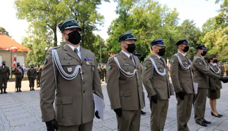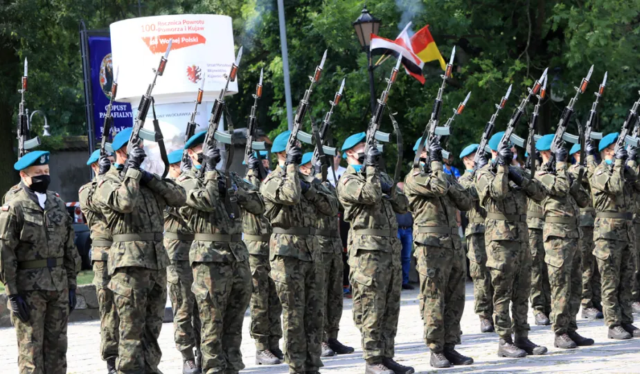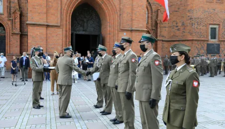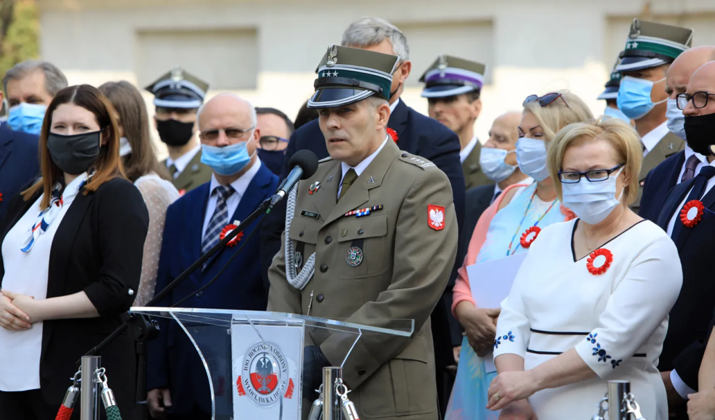 Przedstawiciele Torunia gościli 15 sierpnia 2020 r. we Włocławku na wojewódzkich obchodach 100. Rocznicy Obrony Włocławka i Święta Wojska Polskiego. Uroczystości odbyły się pod Pomnikiem Obrońców Wisły 1920 r. i na placu przed Bazyliką Katedralną p.w. Wniebowzięcia Najświętszej Maryi Panny we Włocławku. Fot. Sławomir Kowalski