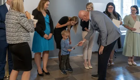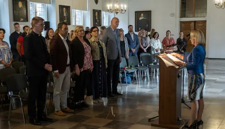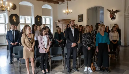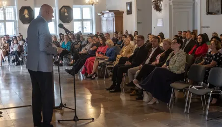 25 września 2023 r. w Ratuszu Staromiejskim prezydent Michał Zaleski wręczył akty awansu na nauczycieli mianowanych 109 toruńskim pedagogom. Fot. Wojtek Szabelski