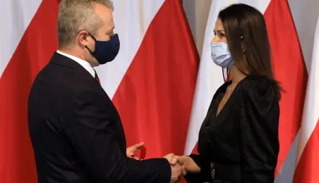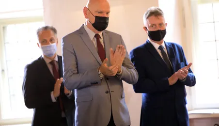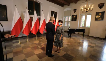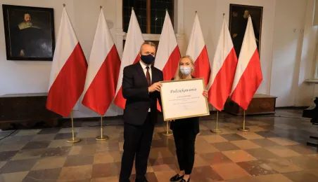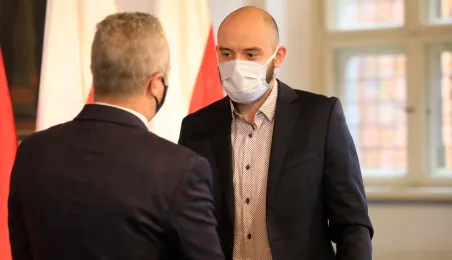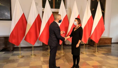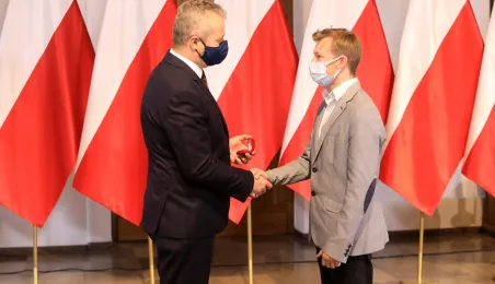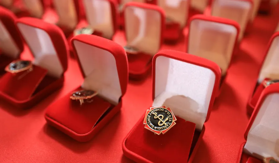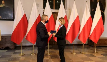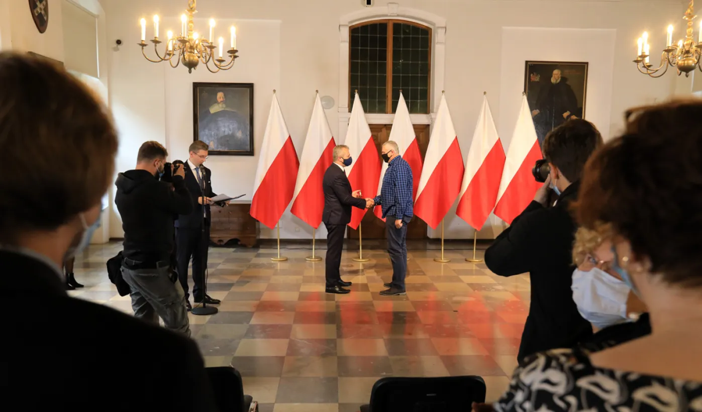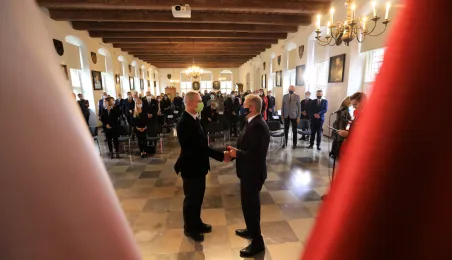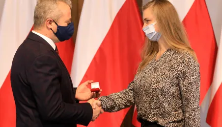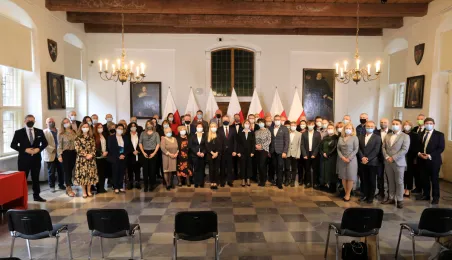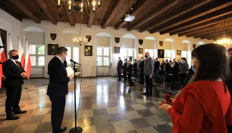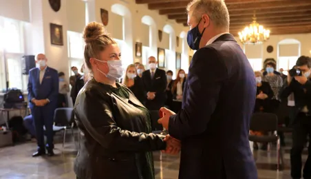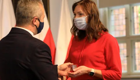 W dniu 19 października 2021 r. w Ratuszu Staromiejskim miała miejsce uroczystość wręczenia odznak honorowych "Za zasługi dla ochrony zdrowia" przyznanych przez ministra zdrowia Adama Niedzielskiego. Medale wręczył wojewoda kujawsko-pomorski Mikołaj Bogdanowicz, w uroczystości udział wziął prezydent Michał Zaleski. Fot. Sławomir Kowalski