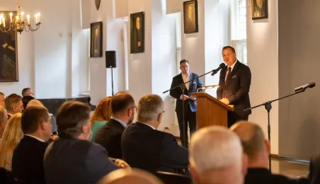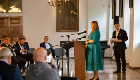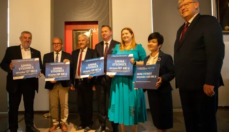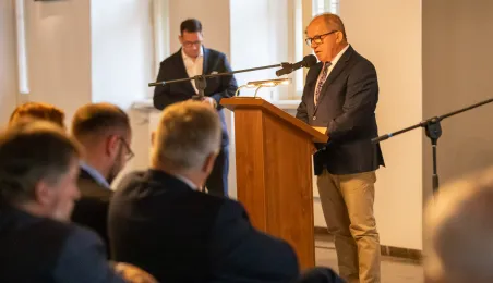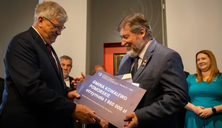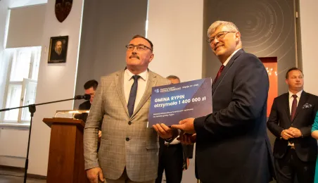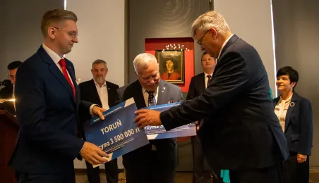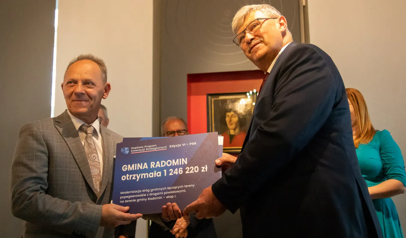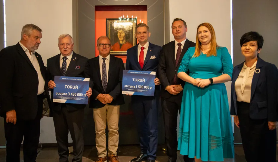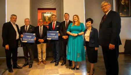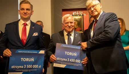 2 października 2023 r. w Ratuszu Staromiejski miało miejsce wręczenie promes samorządowcom z dawnych województw toruńskiego i włocławskiego z VI edycji Rządowego Programu Inwestycji Strategicznych dla gmin popegeerowskich oraz II edycji Rządowego Programu Odbudowy Zabytków. Promesy dla Torunia odebrali zastępcy prezydenta miasta Zbigniew Fiderewicz i Adrian Mól. Fot. Agnieszka Bielecka
