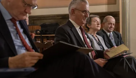 W Sali Kolumnowej Towarzystwa Naukowego przy ul. Wysokiej w Toruniu odbyło się spotkanie z okazji stulecia urodzin śp. prof. Mariana Biskupa. Zmarły dziesięć lat temu naukowiec był Honorowym Obywatelem Miasta Torunia. Fot. Wojtek Szabelski