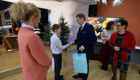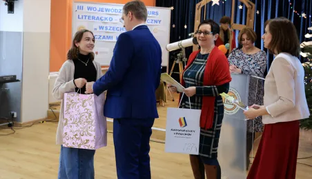 14 grudnia 2023 r. odbyło się uroczyste podsumowanie oraz wręczenie nagród dla finalistów III Wojewódzkiego Konkursu literacko-artystycznego "Wszechświat oczami Kopernika". W wydarzeniu, które odbyło się w Szkole Podstawowej nr 16 w Toruniu wziął udział Zastępca Prezydenta Miasta Torunia Adrian Mól. Fot. Sławomir Kowalski