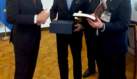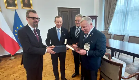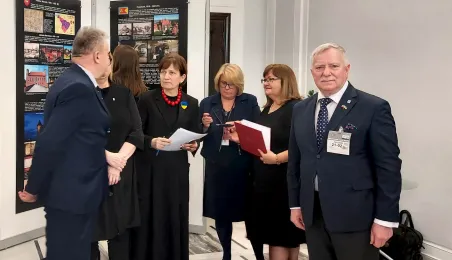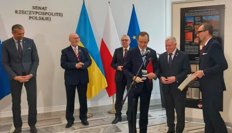 W gmachu Senatu RP w Warszawie 21 lutego 2023 r. została otwarta wystawa pt. "Jubileusz Mikołaja Kopernika w 550. rocznicę urodzin". W wydarzeniu wzięli udział przedstawiciele miasta Torunia: przewodniczący Rady Miasta Marcin Czyżniewski, zastępca prezydenta Torunia Zbigniew Fiderewicz i dyrektor Wydziału Promocji i Turystyki Ewa Banaszczuk-Kisiel. Uroczystość była okazją do uhonorowania przedstawicieli Senatu pamiątkowymi medalami 550. rocznicy urodzin Mikołaja Kopernika, toruńskimi piernikami oraz okolicznościowymi wydawnictwami. Fot. Ewa Banaszczuk-Kisiel