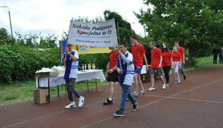 2 czerwca 2022 r. na terenach sportowo-rekreacynych Szkoły Podstawowej Specjalnej nr 19 w Toruniu im. bł. ks. S. W. Frelichowskiego został rozegrany Jubileuszowy X Mityng Lekkoatletyczny "Barwy Sprawności". Organizację regionalnych zawodów dla dzieci i młodzieży z niepełnosprawnością intelektualną w stopniu umiarkowanym lub znacznym wsparła finansowa Gmina Miasta Toruń. Fot. Archiwum SP 19