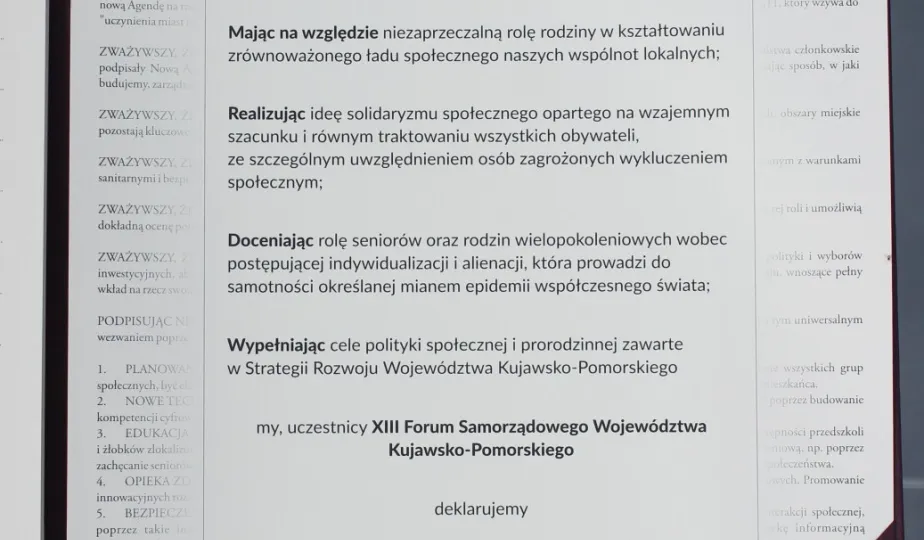 W dniu 7 czewca 2022 z okazji Świeęta Województwa odbyło się w toruńskim Muzeum Etnograficznym XIII Forum Samorządowe Województwa Kujawsko-Pomorskiego. Podniosłą chwilą spotkania było uroczyste podpisanie Kujawsko-Pomorskiej Samorządowej Deklaracji na rzecz Rodziny przez samorządowców województwa. Fot. Adam Zakrzewski