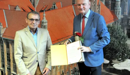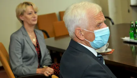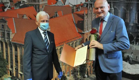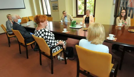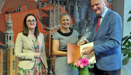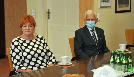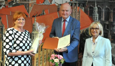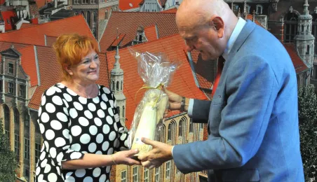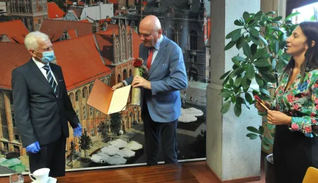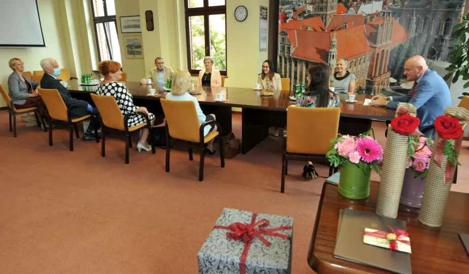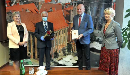 Na emeryturę odchodzi kolejnych czworo pracowników toruńskiego samorządu: Ewa Trędewicz, Maria Seklecka, Andrzej Kobyłecki i Andrzej Siewiński. 28 sierpnia 2020 r. pożegnał ich prezydent Torunia Michał Zaleski, wręczając im listy gratulacyjne, kwiaty i pamiątkowe upominki. Fot. Małgorzata Litwin