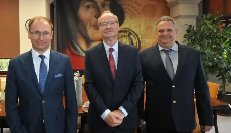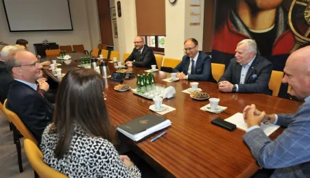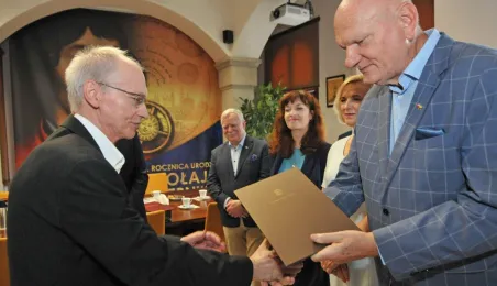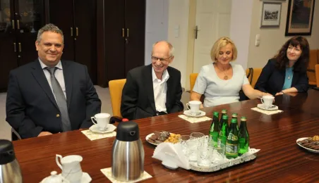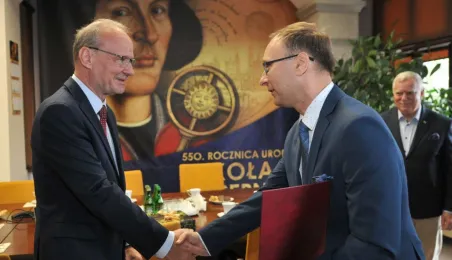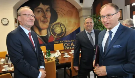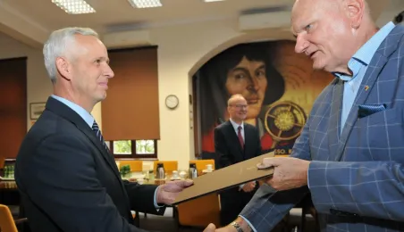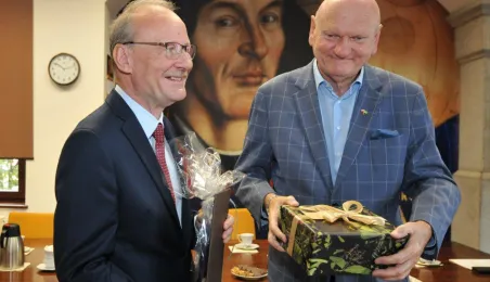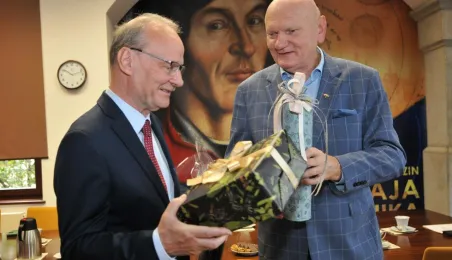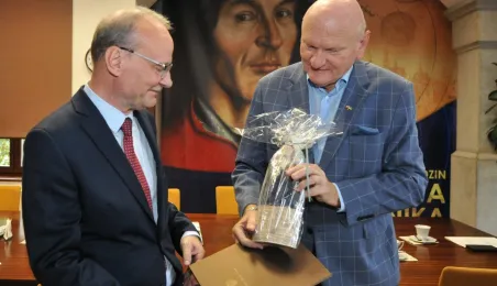 Po wielu latach pracy w Urzędzie Miasta Torunia na emeryturę odchodzą pan Andrzej Śliwowski z Wydziału Geodezji i Kartografii i pan Marek Goczyński z Wydziału Gospodarki Nieruchomościami. 28 sierpnia 2023 r. pożegnali się z nimi prezydent Torunia Michał Zaleski i członkowie kierownictwa urzędu oraz szefowie wydziałów, w których pracowali. Fot. Małgorzata Litwin