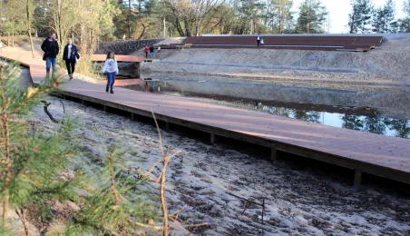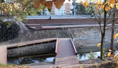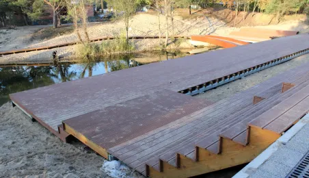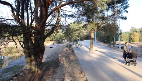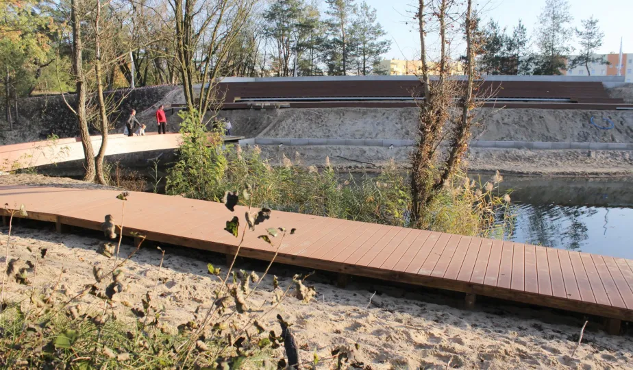 Na obszarze blisko 25 ha tzw. osiedla Jar powstają atrakcyjne tereny turystyczno-rekreacyjne. Wykonana została już blisko połowa prac. Oczyszczono teren i wytyczono ciągi pieszo-rowerowe – powstanie blisko 4 km chodników i ponad 2 km ścieżek rowerowych. Rozpoczęła się też budowa promenady oraz dwóch drewnianych pomostów nad stawem, jak również nawierzchni parkingu na 58 miejsc. Fot. Adam Zakrzewski
