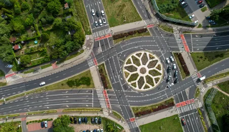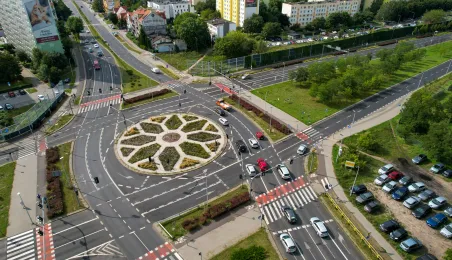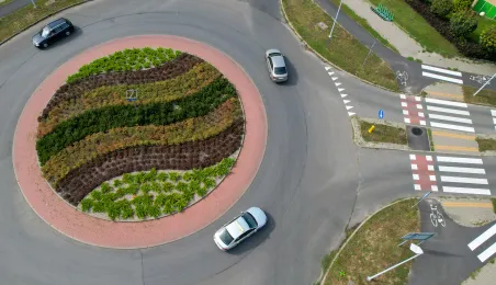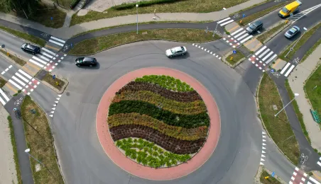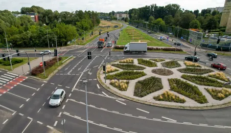 Toruńskie ronda wyróżniają się starannie zaprojektowaną zielenią. Przykładem są skrzyżowanie Trasy Prezydenta W. Raczkiewicza z ul. Grudziądzką oraz rondo im. Tadeusza Ładniaka u zbiegu ulic: Traktorowej, Fortecznej i Polnej. Fot. Agnieszka Bielecka