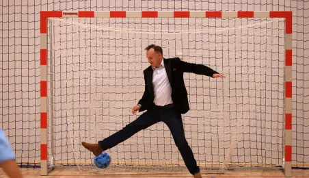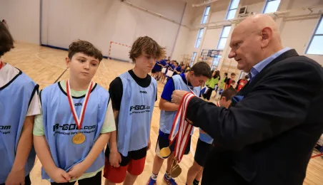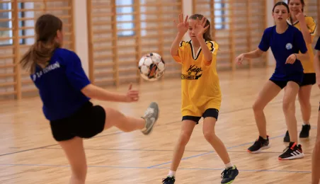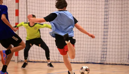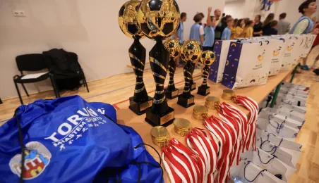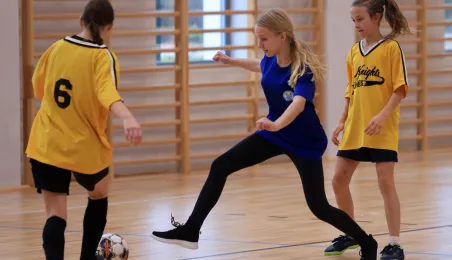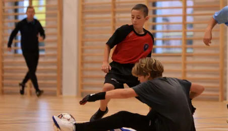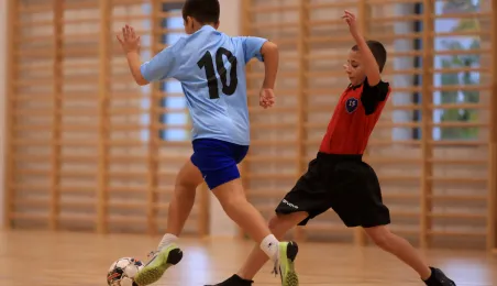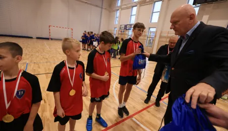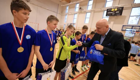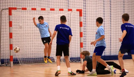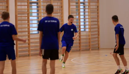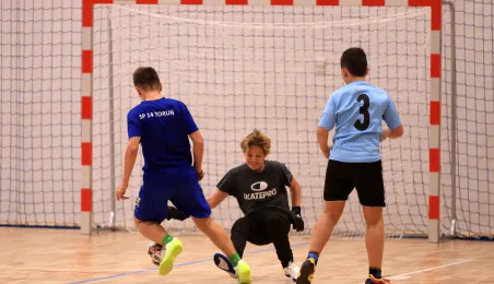 W ramach obchodów Ogólnopolskiego Dnia Praw Dziecka 15 listopada 2023 r. na hali sportowej przy Szkole Podstawowej nr 14 w Toruniu odbył się halowy turniej piłki nożnej. Fot. Sławomir Kowalski