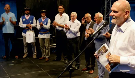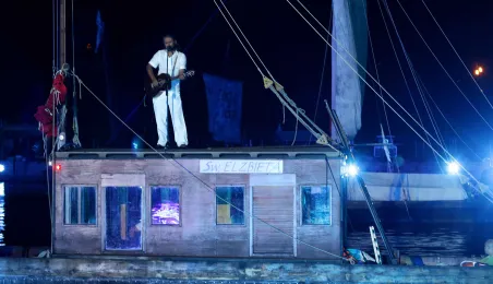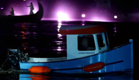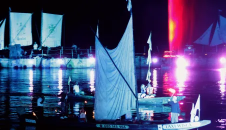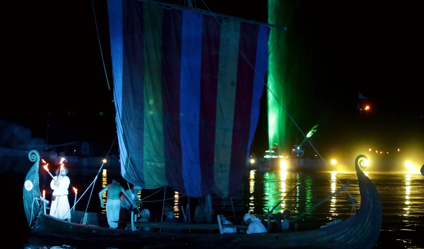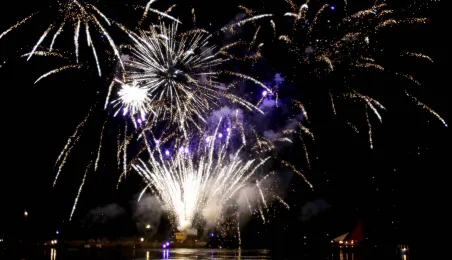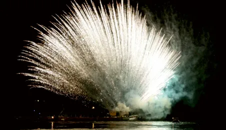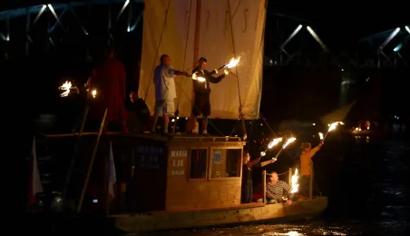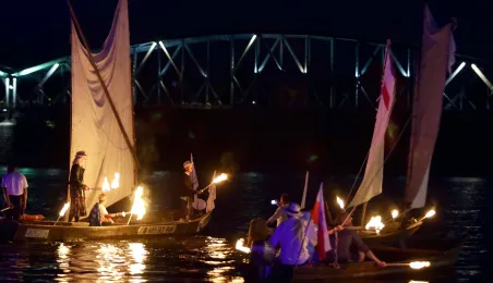 Parada statków i łodzi skąpanych w kolorowych światłach i tryskających fontannach wody, żeglarze z pochodniami, muzyka i fajerwerki – tak zakończył się w Toruniu 15 sierpnia 2017 r. pierwszy w historii Festiwal Wisły. Impreza została zorganizowana z okazji Roku Rzeki Wisły, ale jak zapowiedział prezydent Torunia - będzie się odtąd odbywała co roku. Fot. Adam Zakrzewski