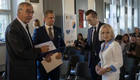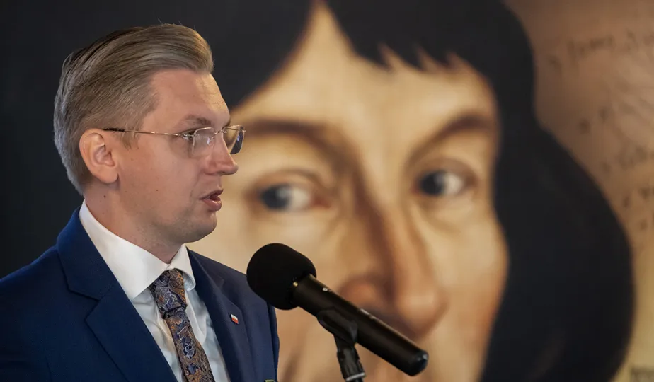 15 września 2023 r. w Ratuszu Staromiejski nastąpiło powitanie laureatów Ogólnopolskiego Konkursu Wiedzy o Mikołaju Koperniku dla szkół podstawowych i ponadpodstawowych. Następnie laureaci zaprezentowali zwycięskie projekty dotyczące osiuągnięć Mikołaja Kopernika. W spotkaniu wziął udział zastępca prezydenta Adrian Mól i wojewódzki kurator oświaty Marek Gralik. Fot. Wojtek Szabelski