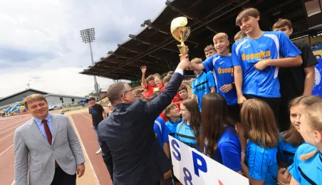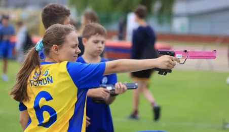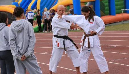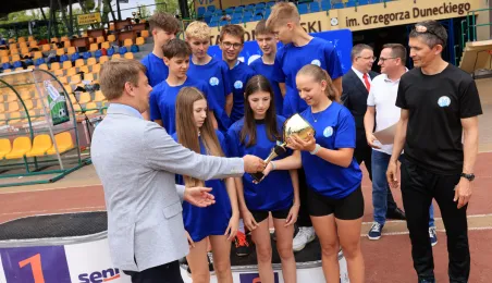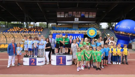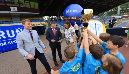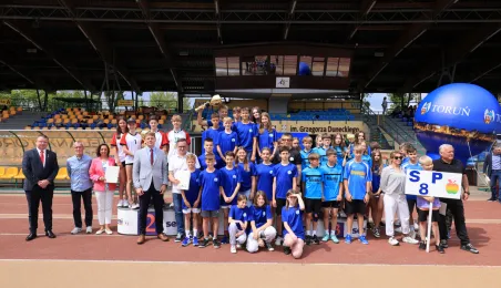 13 czerwca 2024 r. na Stadionie Miejskim im. Grzegorza Duneckiegoodbyło się zakończenie Toruńskiej Olimpiady Szkół i Przedszkoli połączone z piknikiem sportowym. W wydarzeniu udział wzięli Adam Szponka - zastępca prezydenta miasta i Łukasz Walkusz - przewodniczący Rady Miasta. Fot. Sławomir Kowalski