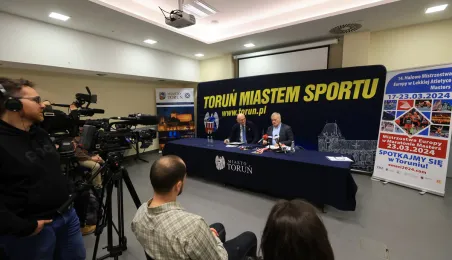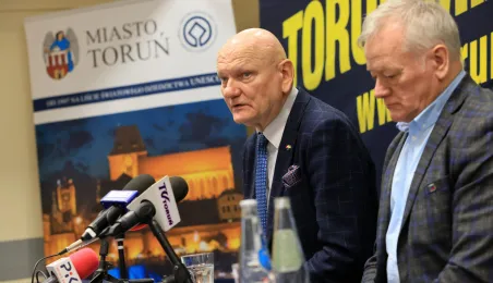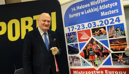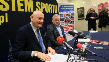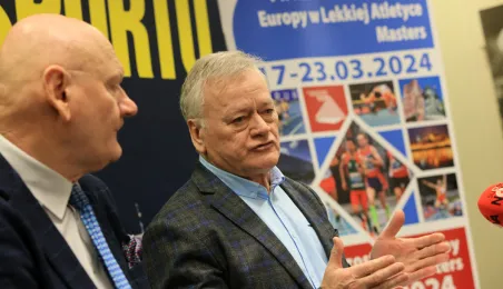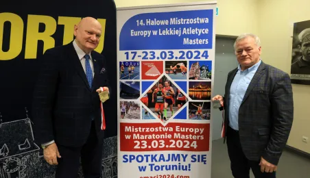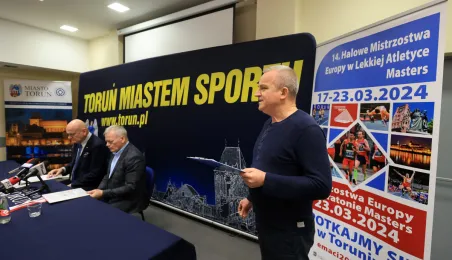 16 stycznia 2024 r. w Arenie Toruń prezydent Michał Zaleski i Wacław Krankowski, prezes Polskiego Związku Lekkiej Atletyki Masters podczas konferencji prasowej zapowiedzieli 14. Halowe Mistrzostwa Europy w Lekkiej Atletyce Masters, które odbędą się w Toruniu 17-23 marca 2024 r. Fot. Sławomir Kowalski