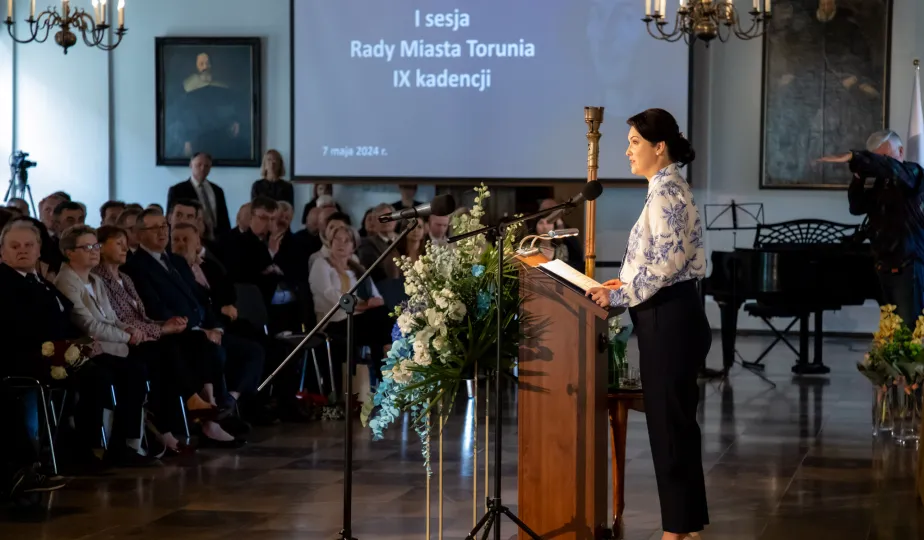 7 maja 2024 r. w Sali Mieszczańskiej Ratusza Staromiejskiego miało miejsce zaprzysiężenie nowego prezydenta miasta, Pawła Gulewskiego, oraz ślubowanie radnych miejskich kadencji 2024-2029. Fot. Agnieszka Bielecka