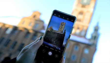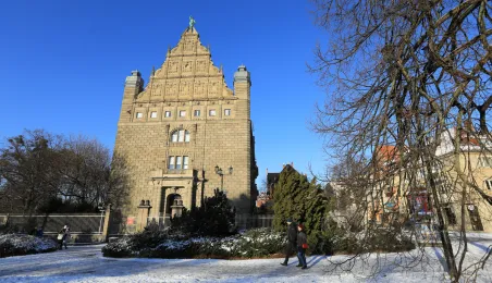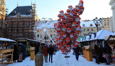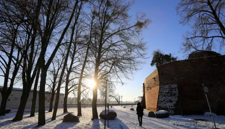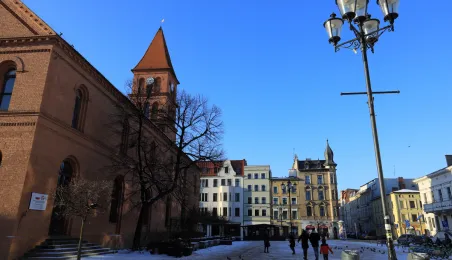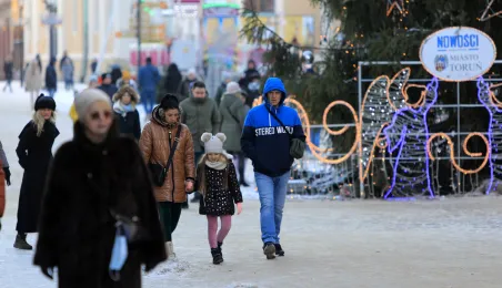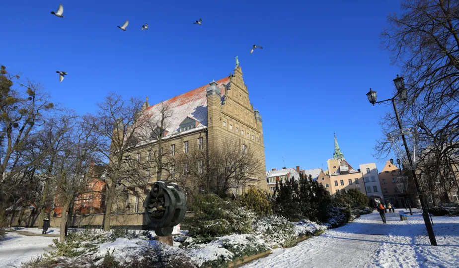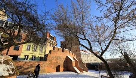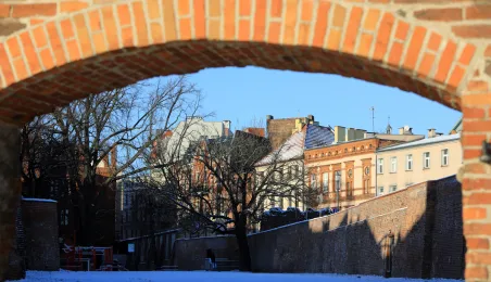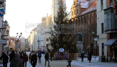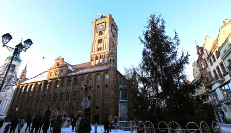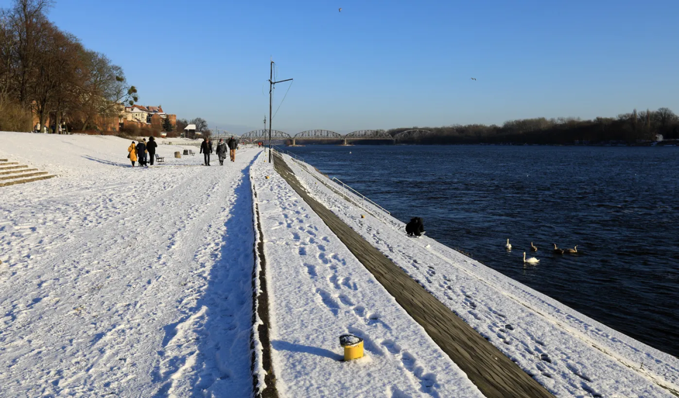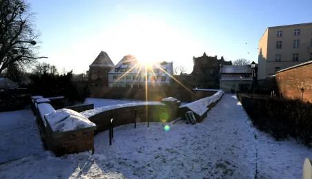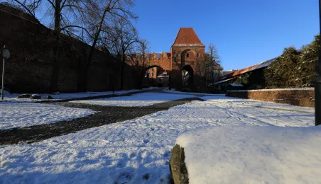 W roku 2021 mieliśmy białe święta. Co więcej, tuż przed swylwestrem w dn. 29 grudnia 2021 r. śnieg wciąż przykrywa toruńskie budynki u ulice, sprawiając, że nastrój świąteczny wciąż się utrzymuje. Fot. Sławomir Kowalski