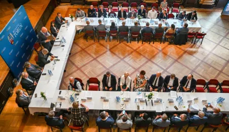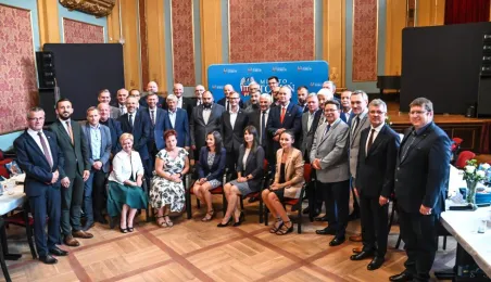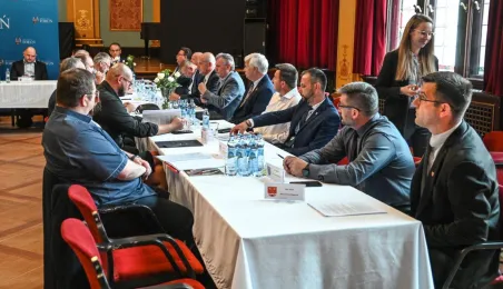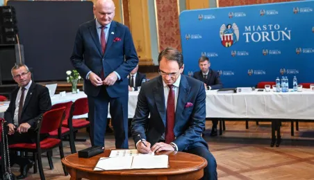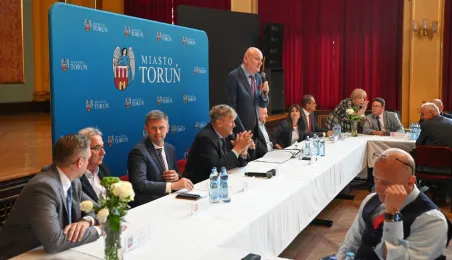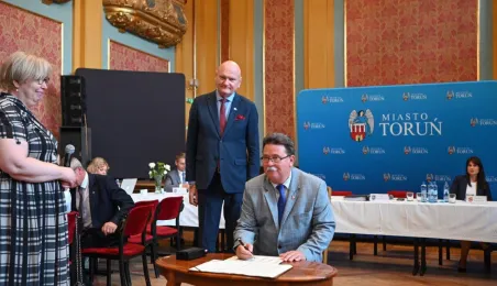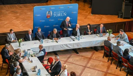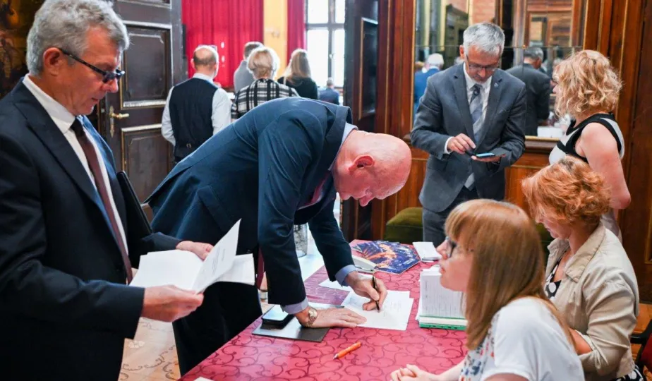 Dnia 9 sierpnia 2022 r. w Dworze Artusa spotkali się przedstawiciele 36 samorządów, by powołać do życia Stowarzyszenie Miejskiego Obszaru Funkcjonalnego Torunia. Fot. Lech Kamiński