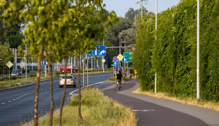 Trasa Prezydenta Władysława Raczkiewicza zachwyca bujną zielenią - to efekt nasadzeń sukcesywnie czynionych od początku powstania arterii. Wzdłuż „średnicówki” rośnie około 700 drzew, blisko 600 pnączy, a także tysiące krzewów i traw ozdobnych. Nasadzenia trwały etapami, a w rezultacie osiągnięto efekt zielonego szlaku, przy którym znajdują się także chodnik i droga rowerowa, chętnie uczęszczane przez torunian. Fot. Agnieszka Bielecka