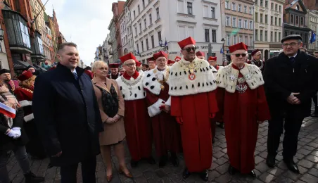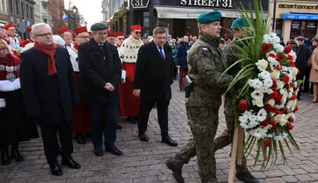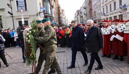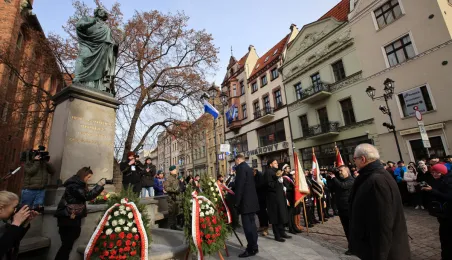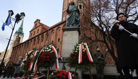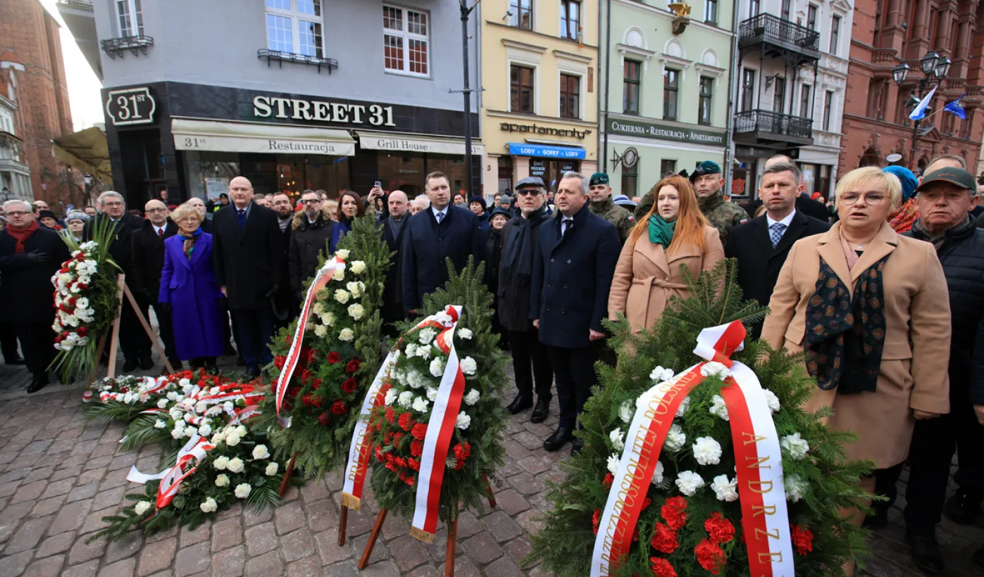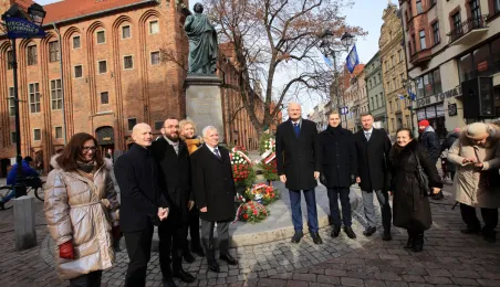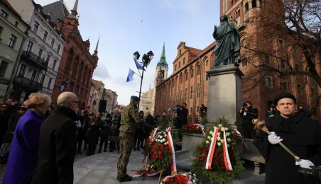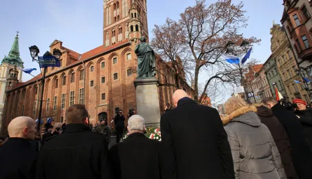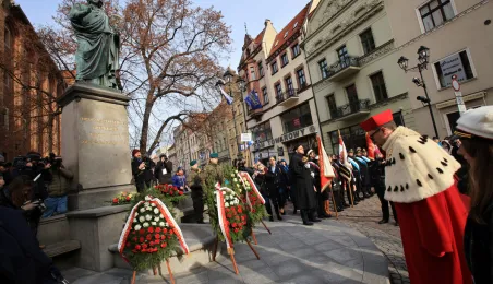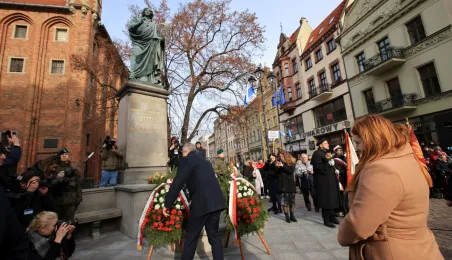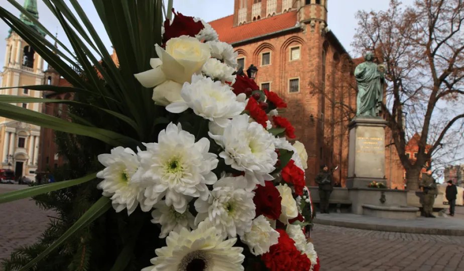 19 lutego 2023 r. przedstawiciele rządu, samorządu, Uniwersytetu im. Mikołaja Kopernika złożyli kwiaty pod pomnikiem astronoma w 550. rocznicę jego urodzin. Fot. Sławomir Kowalski