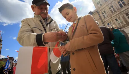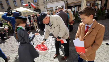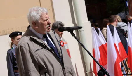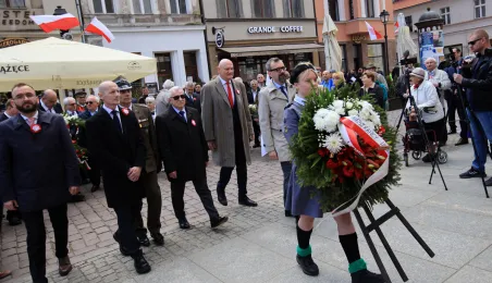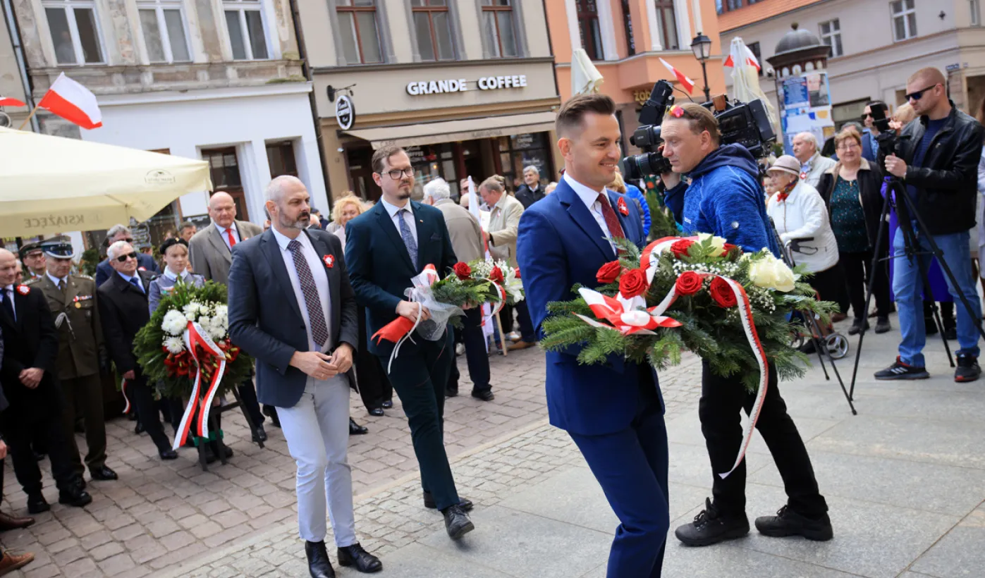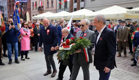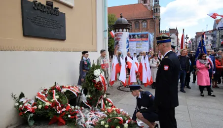 Z okazji Narodowego Święta Konstytucji złożone zostały kwiaty pod tablicą na kościele św. Ducha. Przypomina ona wydarzenia z 1 i 3 maja 1982 roku, kiedy Toruń stał się miejscem pokojowych demonstracji mieszkańców miasta i regionu przeciwko wprowadzeniu w Polsce stanu wojennego. Ponadto, 3 maja 2023 r. odsłonięta została tablica upamiętniająca pierwszą w okresie powojennym plenerową mszę św. z udziałem kilkunastu tysięcy uczestników, zorganizowaną 3 maja 1981 r. z inicjatywy przedstawicieli rodzącego się wówczas NSZZ "Solidarność" Rolników Indywidualnych dla uczczenia 190. rocznicy uchwalenia Konstytucji 3 Maja. Zdj. Sławomir Kowalski