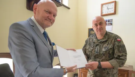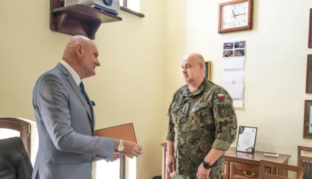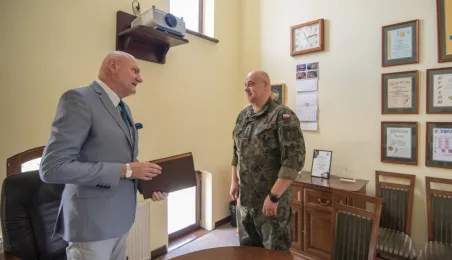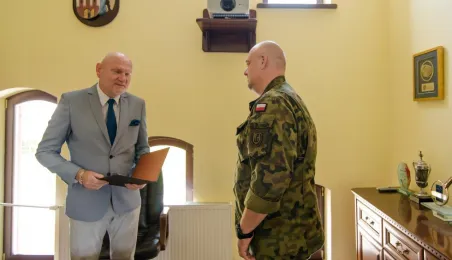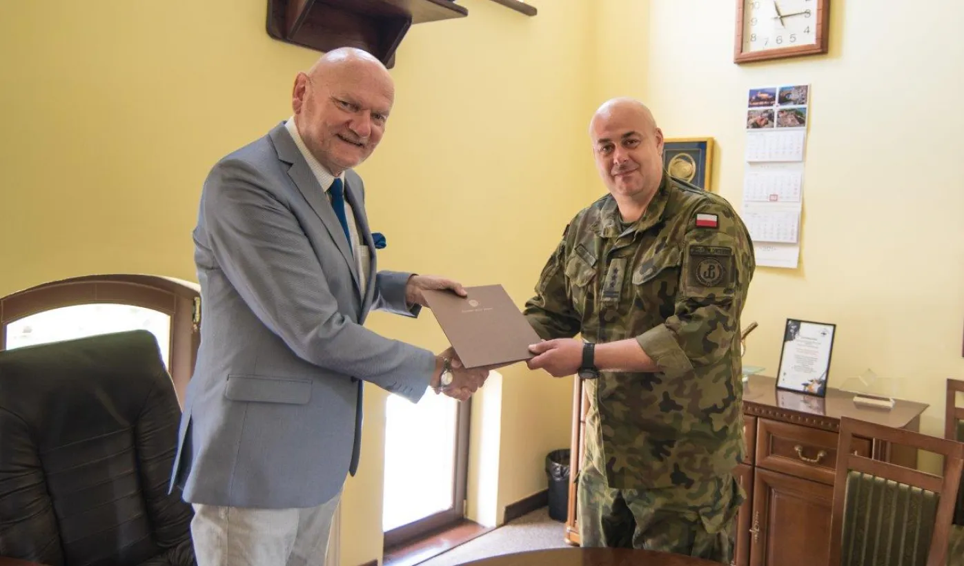 W dniu 29 lipca 2021 roku prezydent Michał Zaleski pożegnał odchodzącego ze stanowiska Komendanta Centrum Szkolenia Wojsk Obrony Terytorialnej w Toruniu płk Krzysztofa Leszczyńskiego. Fot. Lech Kamiński