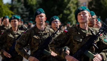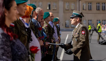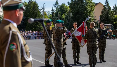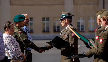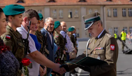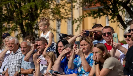 W sobotę 12 sierpnia 2023 r. w Toruniu, po 28 dniach szkolenia podstawowego, 91 żołnierzy V turnusu dobrowolnej zasadniczej służby wojskowej wypowiedziało słowa roty przysięgi wojskowej. Fot. Agnieszka Bielecka