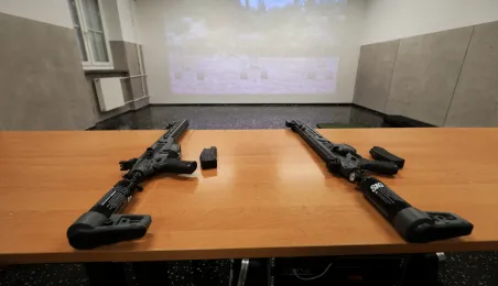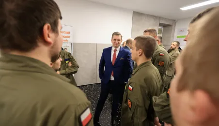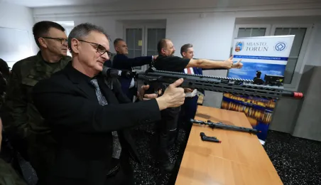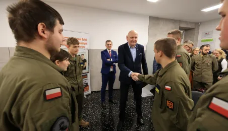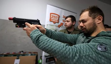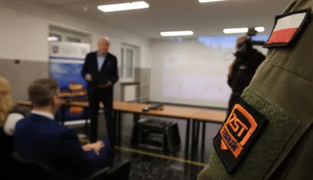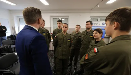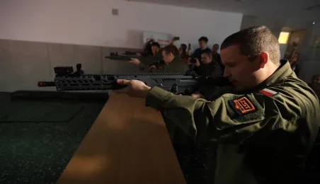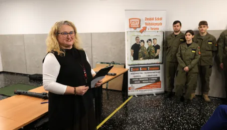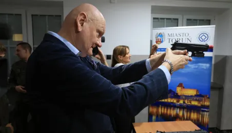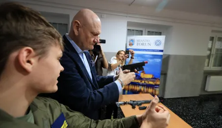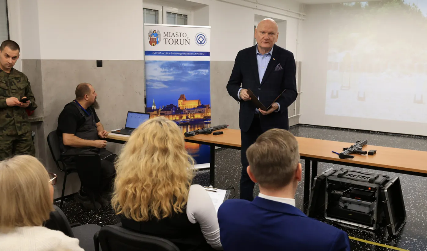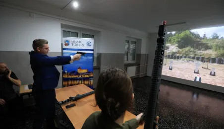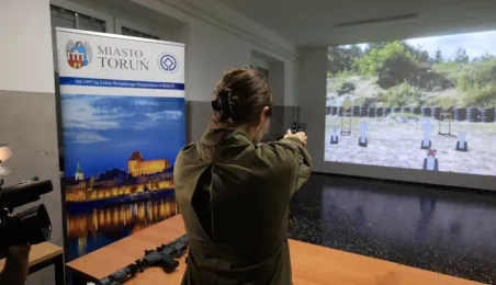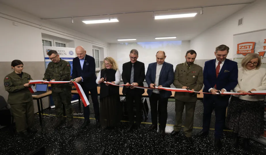 12 stycznia 2024 r. w Zespole Szkół Technicznych w Toruniu odbyła się uroczystość otwarcia strzelnicy wirtualnej. Korzystać z niej będą mogli przede wszystkim uczniowie toruńskich szkół, którzy kształcą się w oddziałach przygotowania wojskowego. Fot. Sławomir Kowalski